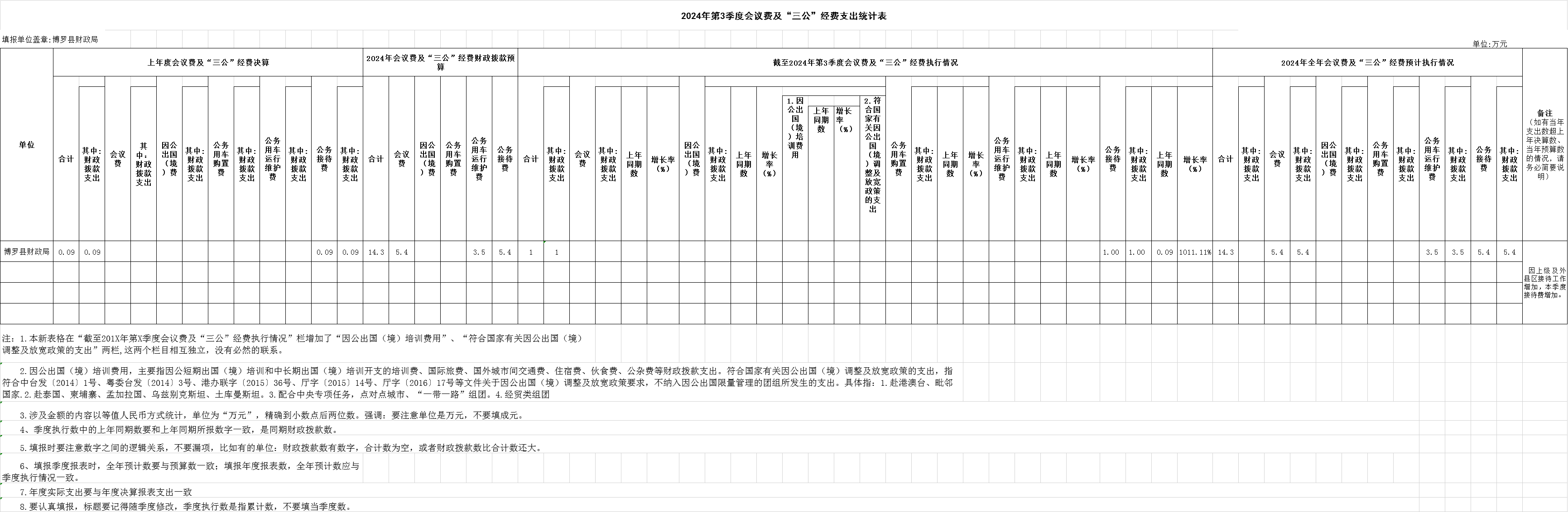 博羅縣財(cái)政局2024年第3季度會(huì)議費(fèi)及“三公”經(jīng)費(fèi)支出統(tǒng)計(jì)表