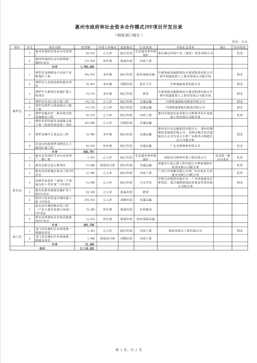 惠州市政府和社會(huì)資本合作模式PPP項(xiàng)目開(kāi)發(fā)目錄(2017年10月23日更新)