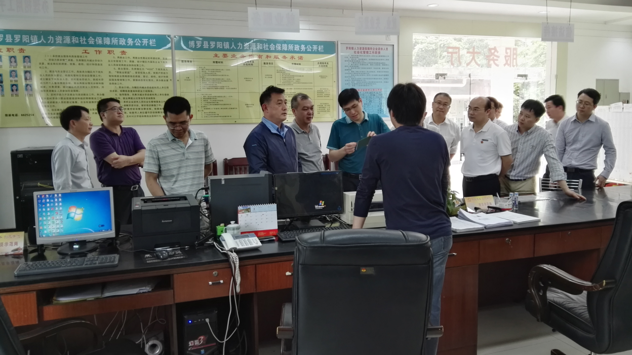 調研組一行首先來到羅陽街道人社所,通過現場詢問工作人員、查看網絡設備、查閱相關資料、觀看相關信息系統操作等方式,詳細了解“智慧人社”建設的相關工作。羅陽街道人社所工作人員向調研組詳細說明了在操作信息系統時所遇到的困難和問題,并提出了一些自己的建議。