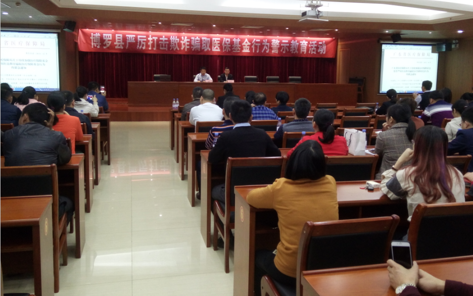 為持續(xù)加強(qiáng)醫(yī)保基金監(jiān)管,嚴(yán)厲打擊欺詐騙取醫(yī)保基金行為,有效整頓和規(guī)范醫(yī)療保障運(yùn)行秩序,根據(jù)《廣東省醫(yī)療保障局關(guān)于持續(xù)加強(qiáng)醫(yī)療保障基金監(jiān)管嚴(yán)厲打擊欺詐騙取醫(yī)療保障基金行為的緊急通知》(粵醫(yī)保函[2018]62號(hào)),博羅縣人社局聯(lián)合惠州市社保局博羅分局,于2018年11月22日組織全縣社保經(jīng)辦機(jī)構(gòu)和各定點(diǎn)機(jī)構(gòu),在博羅縣社會(huì)服務(wù)中心4樓會(huì)議室舉辦了“博羅縣嚴(yán)厲打擊欺詐騙取醫(yī)保基金行為警示教育活動(dòng)”。