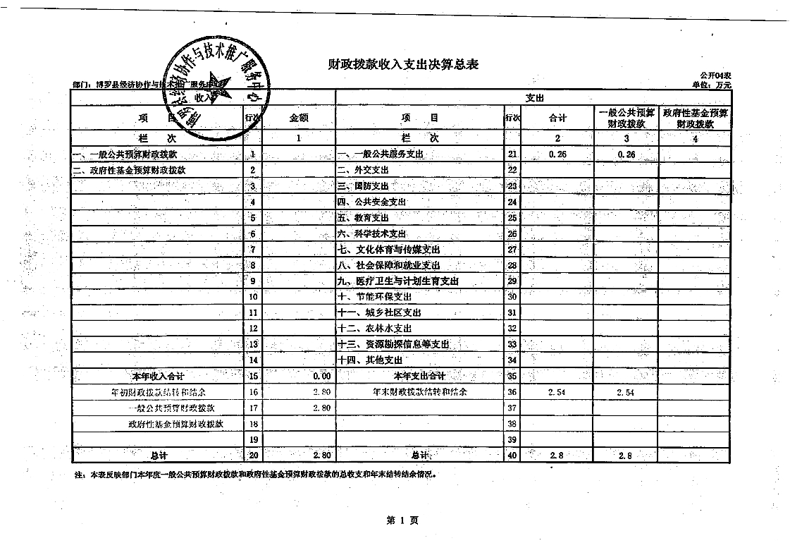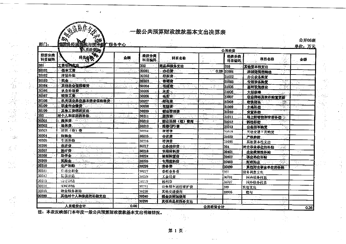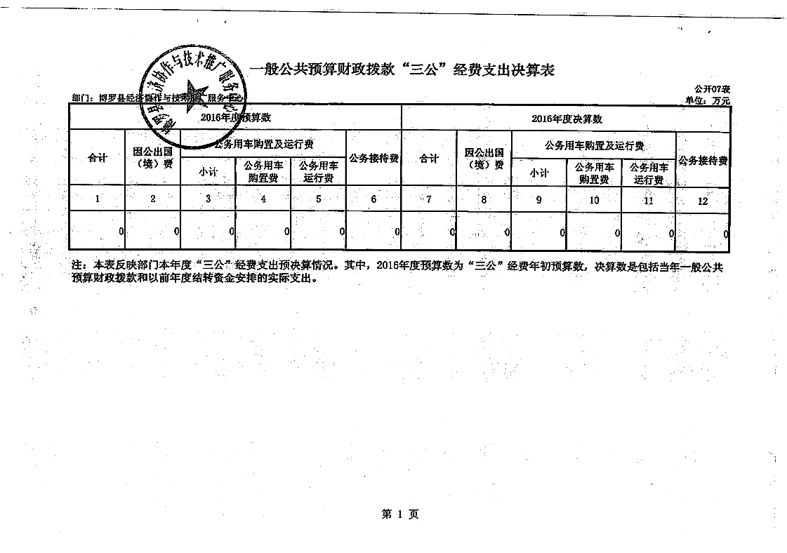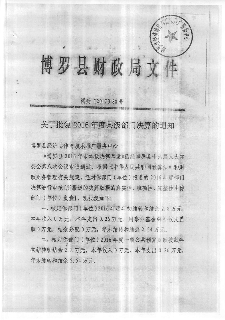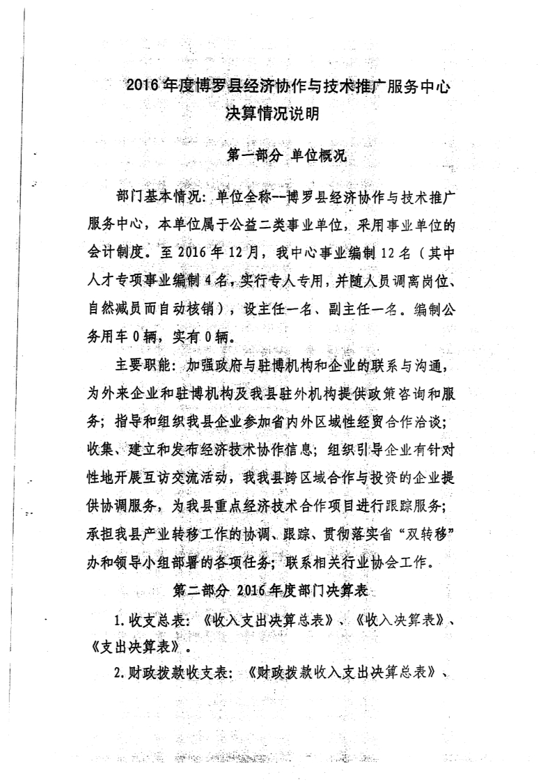 博羅縣經濟協作與技術推廣服務中心2016年決算公開
