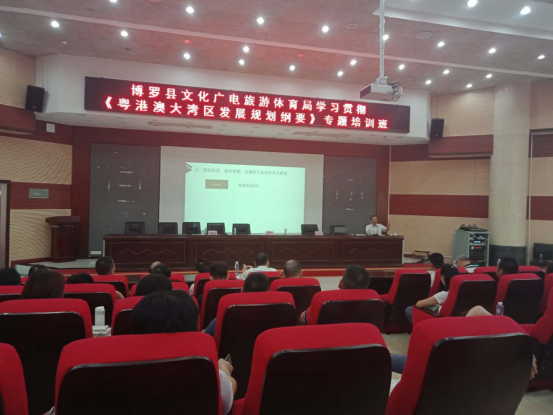 為深入學習《粵港澳大灣區發展規劃綱要》,研討粵港澳大灣區建設的思路舉措 ,結合我局實際 ,6月21日上午,博羅縣文化廣電旅游體育局學習貫徹《粵港澳大灣區發展規劃綱要》專題培訓班,在博羅縣圖書館二樓報告廳舉行。朱炳文局長作動員講話,縣黨校校長張小明同志對《粵港澳大灣區發展規劃綱要》專題輔導。全局全體干部職工參加了專題培訓班。