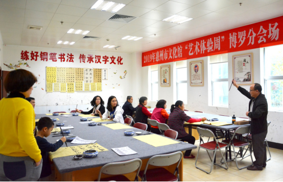 2019年1月12日、13日, 由惠州市文化館主辦,博羅縣文化館承辦的藝術(shù)體驗(yàn)周在博羅縣文化館舉行,此次活動(dòng)為市民群眾提供了書法和古箏的體驗(yàn)課程,讓市民群眾在這個(gè)充滿藝術(shù)氛圍里,找到自己的藝術(shù)興趣所在。體驗(yàn)當(dāng)天市民群眾積極參與,現(xiàn)場(chǎng)呈現(xiàn)出一種濃厚的學(xué)習(xí)氛圍,得到廣大藝術(shù)愛好者的一致好評(píng),體驗(yàn)的人數(shù)高達(dá)近百人,讓市民群眾在參與活動(dòng)的過程中“發(fā)現(xiàn)興趣 體驗(yàn)興趣 培養(yǎng)興趣”,孕育市民群眾的審美情操、培養(yǎng)市民群眾的藝術(shù)修養(yǎng),從而整體上提高惠州市民的藝術(shù)品味和文化素養(yǎng)。