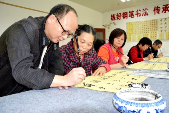 2019年1月12日,博羅縣文化館館長夏檐笑在書法班現(xiàn)場(chǎng)指導(dǎo)
