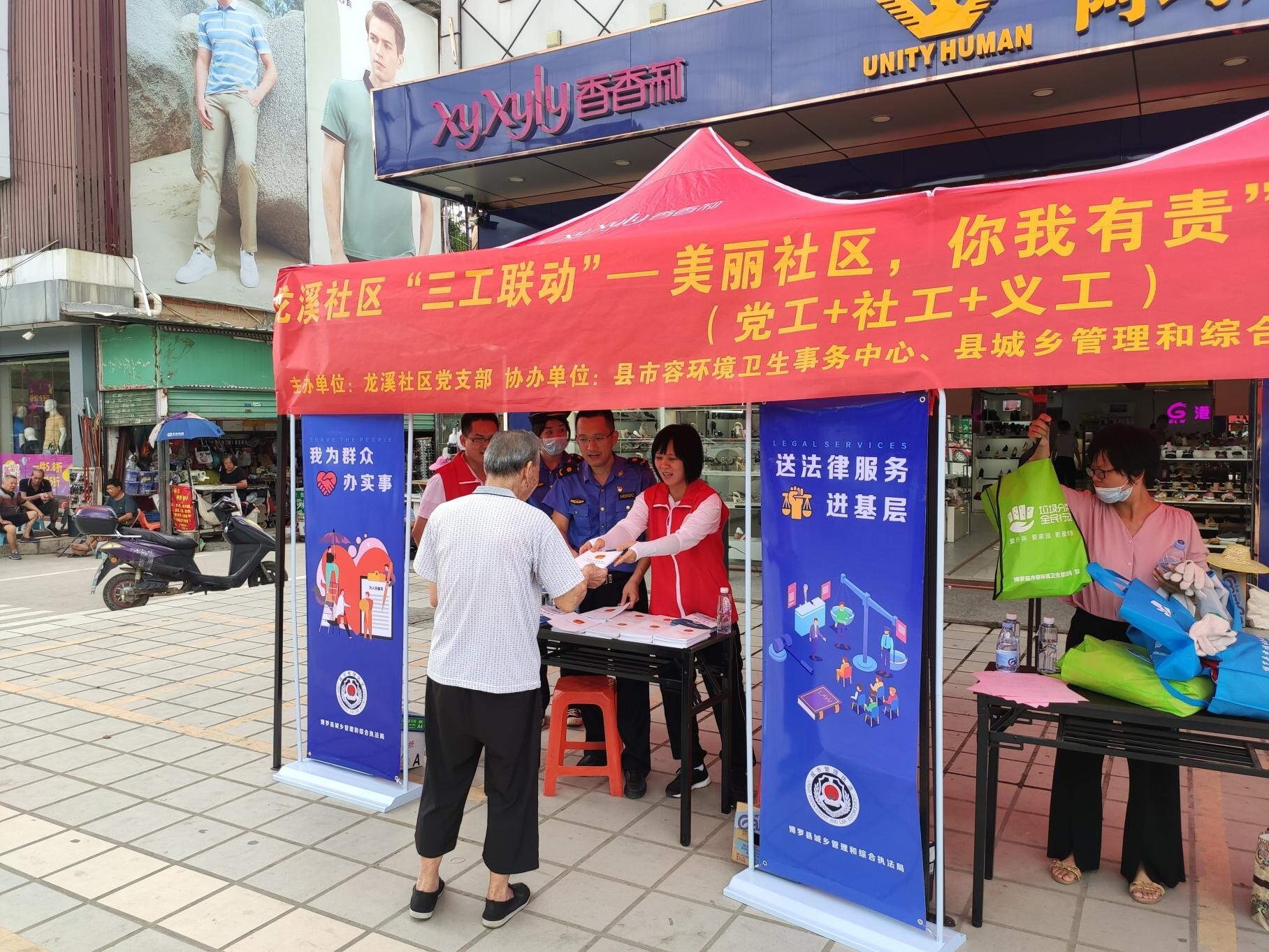我局在鎮街繁華的路段,組織普法宣傳員和志愿者,通過現場受理法律咨詢以及發放普法宣傳資料的形式,全面深入了解基層群眾思想動態以及老百姓最盼最急最憂最怨的問題,耐心講解城鄉管理和綜合執法對我們生活的重要意義。通過本次活動,增強了群眾的法制觀念和城鄉管理意識,為我局各項工作的開展奠定了堅實的基礎,讓人民群眾切實感受到了我們黨和政府關懷備至。
