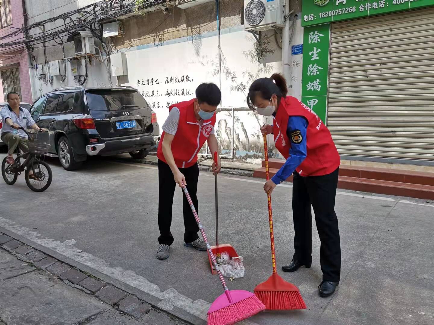 各志愿者拿著清掃工具就投入到此次的創文大掃除活動中,通過此次活動的開展,社區環境在一定程度上得到了改善,路面、綠化帶等更加干凈整潔。