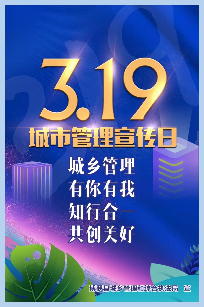 3月19日,我局通過東江河畔、微信朋友圈等平臺發布了9張宣傳日主題海報推文,宣傳市容環境、戶外廣告、垃圾分類、城市綠化等相關知識。線上呼吁廣大群眾關注城市管理,共創美好博羅。