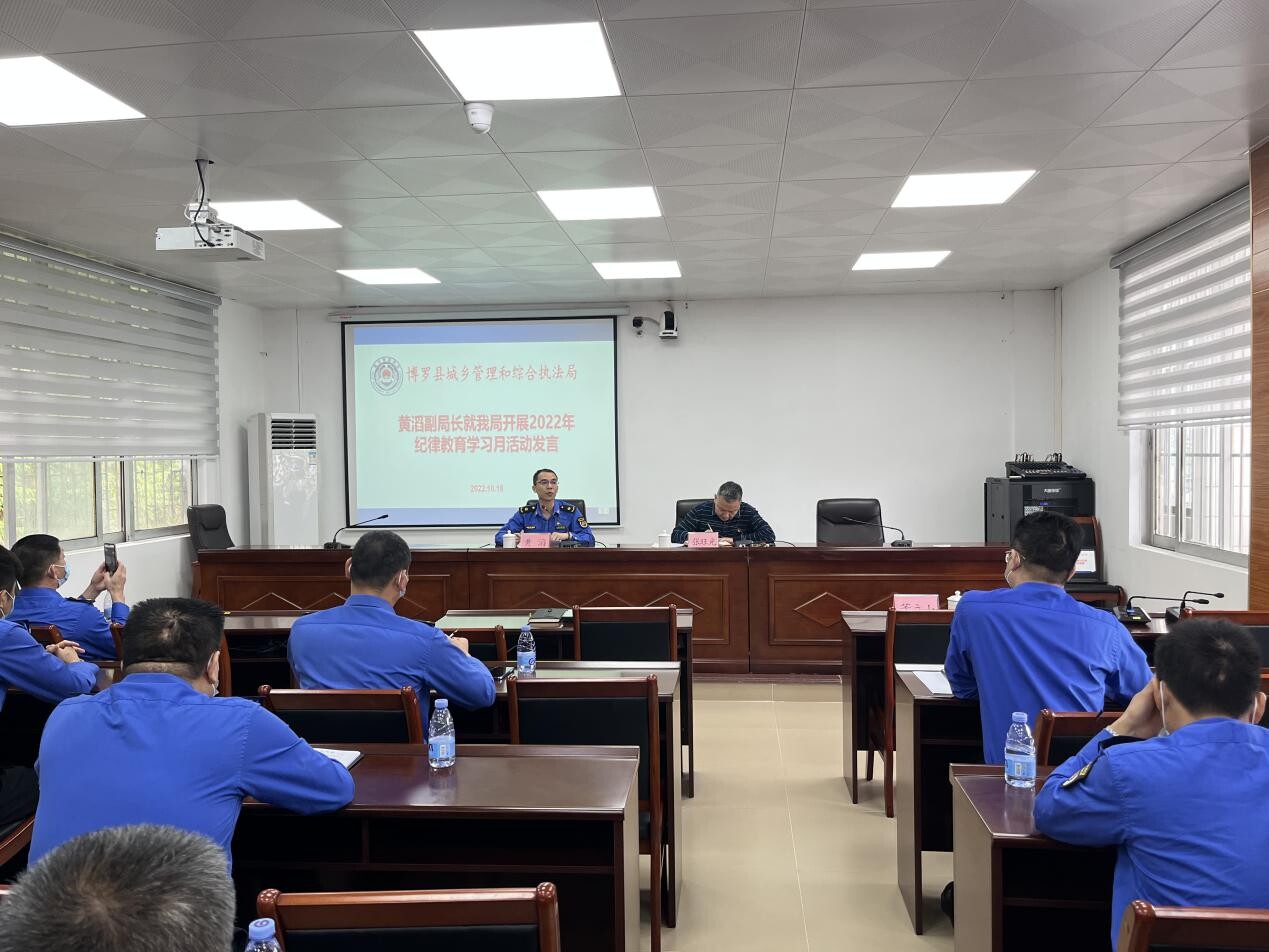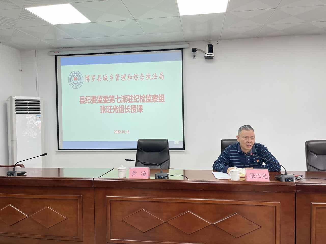 為深入學習貫徹習近平總書記在十九屆中央紀委六次全會上的重要講話精神,貫徹落實省第十三次黨代會和市第十二次黨代會精神,堅持不懈把全面從嚴治黨向縱深推進。2022年10月18日上午9點,博羅縣城鄉管理和綜合執法局召開“2022年紀律教育學習月”活動工作會議,邀請縣紀委監委第七派駐紀檢監察組張旺光組長為我局授課,局領導及全體工作人員參加本次會議。