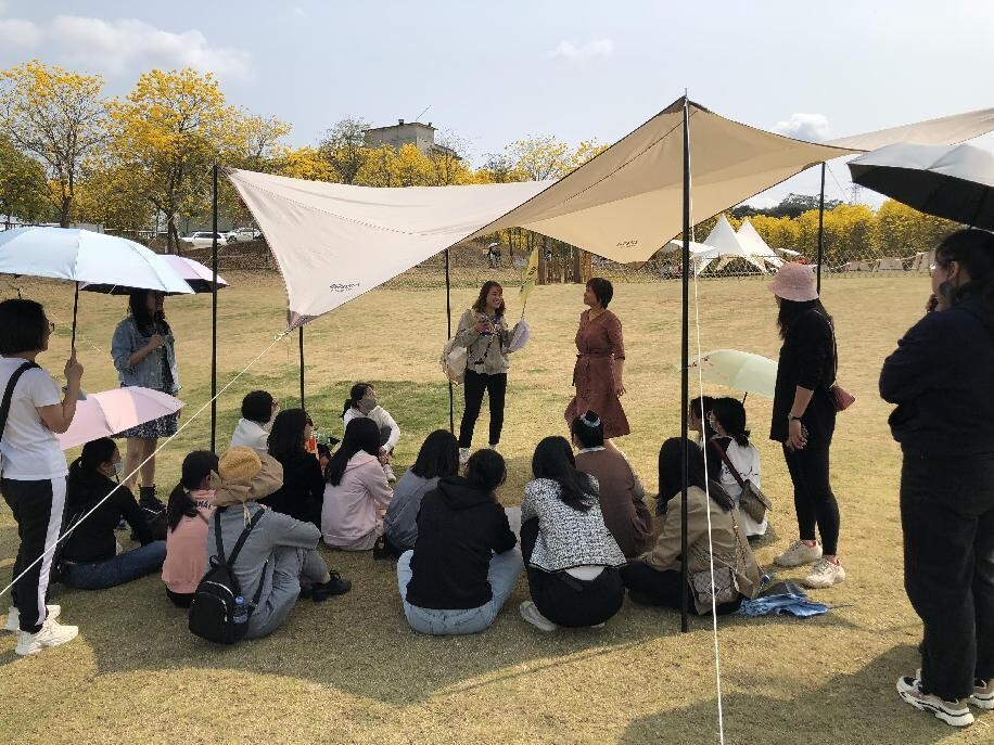活動主要分為參觀游覽特色風景和開展團體趣味活動兩部分。首先是參觀龍門縣的兩個國家級古村落——繩武圍和水坑村,感受傳統古樸的歷史風貌。然后前往盛花谷,打卡風鈴木棧道、彩虹道、玫瑰園等,生機勃勃的風鈴木與活力滿滿的女干部職工們相映成趣。參觀完美麗的風景,團體趣味活動隨之開展,歡聲笑語不斷。