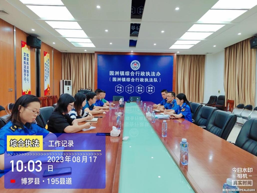 為及時、妥善處理本次建筑垃圾重大案件,做好提前介入指導工作,從源頭保證案件的辦理質效,嚴把案件質量關。2023年8月17日上午,博羅縣城鄉管理和綜合執法局法規股及執法大隊派員前往園洲鎮執法隊開展案件查辦指導工作,針對辦案過程中的難點堵點提供精準指導,對現場檢查、現場勘驗以及如何取證等重點環節進行研究探討,深入了解,加強溝通,形成一致的辦案思路,并提供了相關鎮街成功移送的案卷予以參考。