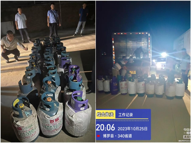為進(jìn)一步深入開(kāi)展燃?xì)庑袠I(yè)安全生產(chǎn)“打非治違”行為,切實(shí)保障人民群眾用氣安全,縣城鄉(xiāng)管理和綜合執(zhí)法局根據(jù)《關(guān)于開(kāi)展打擊“黑氣”聯(lián)合行政執(zhí)法專項(xiàng)行動(dòng)的通知》(博住建函〔2023〕614號(hào))文件精神,保持高壓態(tài)勢(shì),持續(xù)加大聯(lián)合執(zhí)法和打擊“黑氣”力度。2023年10月25日,根據(jù)摸排線索和群眾舉報(bào),縣城鄉(xiāng)管理和綜合執(zhí)法局聯(lián)合住建部門(mén)、公安部門(mén)以及楊僑鎮(zhèn)政府組成打擊“黑氣”聯(lián)合執(zhí)法隊(duì)伍,開(kāi)展打擊燃?xì)夥欠ń?jīng)營(yíng)聯(lián)合行動(dòng)。