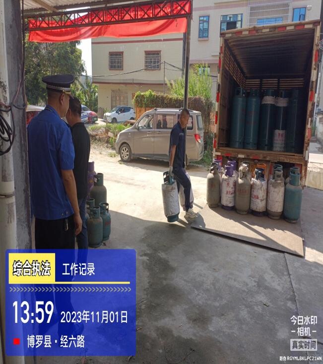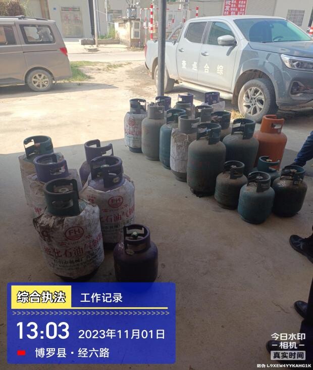為進(jìn)一步加強(qiáng)燃?xì)獍踩芾?規(guī)范燃?xì)馐袌鲋刃?消除安全隱患,做好燃?xì)獍踩ぷ鳎鶕?jù)《關(guān)于開展打擊“黑氣”聯(lián)合行政執(zhí)法專項行動的通知》(博住建函〔2023〕614號)文件精神,保持高壓態(tài)勢,持續(xù)加大聯(lián)合執(zhí)法和打擊“黑氣”力度。2023年11月1日,根據(jù)摸排線索,博羅縣城鄉(xiāng)管理和綜合執(zhí)法局聯(lián)合縣住建部門以及龍溪街道辦組成打擊“黑氣”聯(lián)合執(zhí)法隊伍,開展打擊燃?xì)夥欠ń?jīng)營聯(lián)合行動。