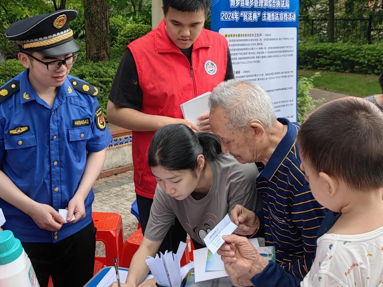 為貫徹落實2021-2025普法規劃,持續深入開展《中華人民共和國民法典》等法律法規普法宣傳,增強廣大群眾運用《中華人民共和國民法典》維護自身權益的能力。2024年5月23日,博羅縣城鄉管理和綜合執法局執法人員、志愿者服務隊會同羅陽街道綜合執法隊、羅陽街道曙光社區黨支部共同到城市山麓小區開展2024年“民法典”主題普法宣傳活動。