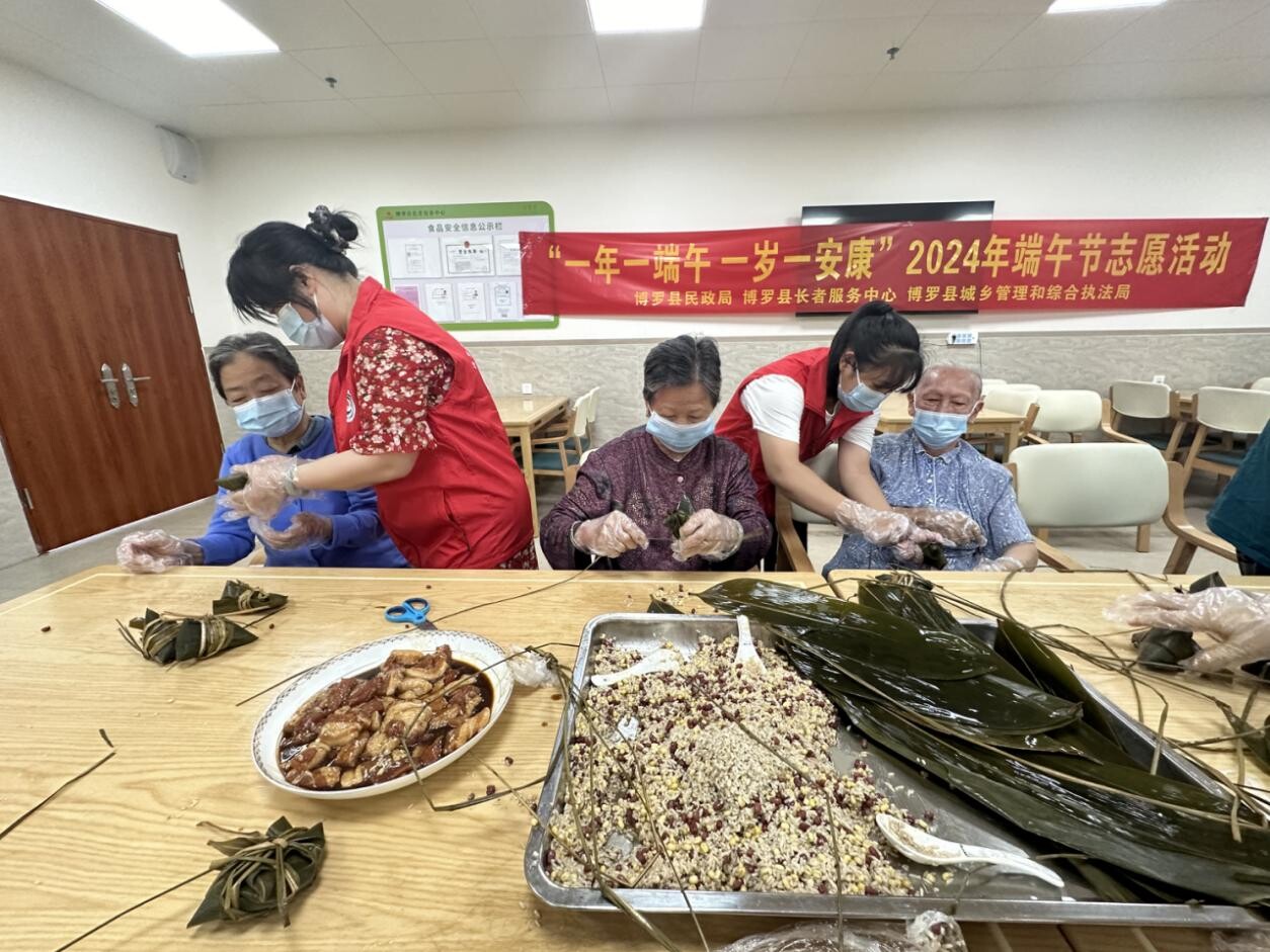在傳統佳節端午節到來之際,為弘揚尊老、愛老、敬老、助老的傳統美德。6月6日下午,縣城鄉管理和綜合執法局志愿者在縣長者服務中心與華邦美好家園(惠州博羅)孝慈苑志愿者、縣民政局志愿者共同舉辦“一年一端午,一歲一安康”2024年端午節志愿活動,共同與長者們一起包粽子,感受端午節日氣氛。