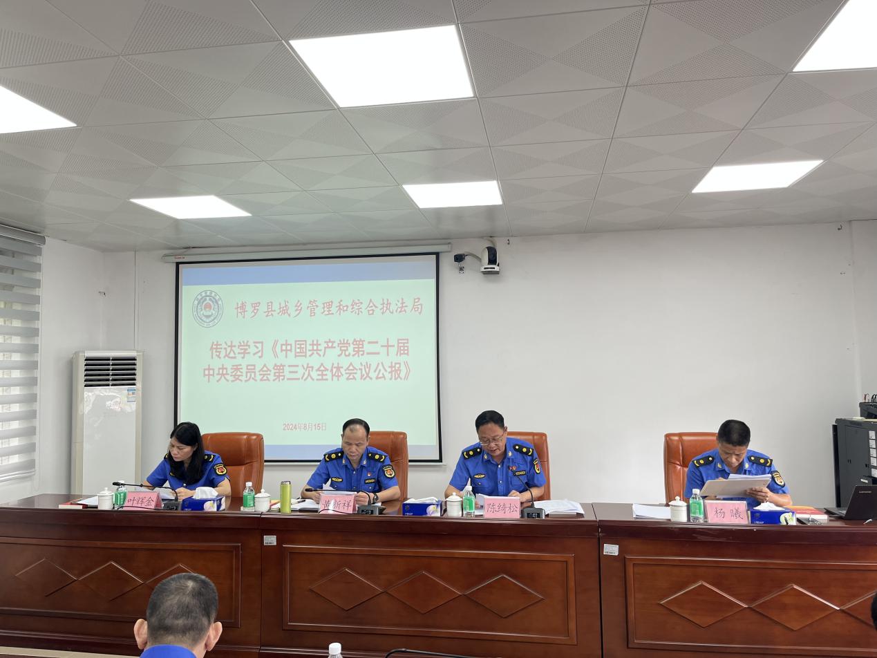 8月15日,博羅縣城鄉管理和綜合執法局召開傳達學習貫徹黨的二十屆三中全會精神報告會,傳達學習習近平總書記在黨的二十屆三中全會上的重要講話精神,集中學習《中共中央關于進一步全面深化改革、推進中國式現代化的決定》精神及全會公報,傳達省市縣相關會議精神,研究部署我局下半年重點工作。局領導班子成員、全體干部職工參加會議。
