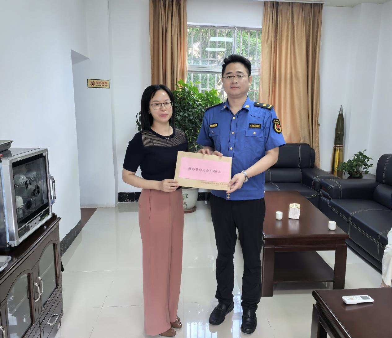 在全國第40個教師節到來之際,為充分發揮教育家精神的思想感召、價值引領和實踐指導作用,弘揚人民教師高尚師德,激勵廣大教師忠實履行教育職責,營造尊師重教良好社會風尚,不斷推動博羅教育高質量發展。2024年9月9日,根據縣委、縣政府工作安排,博羅縣城管執法局到縣教師發展中心組織開展2024年教師節慰問活動。縣城管執法局局長陳綺松、辦公室負責人李文聰參加活動。