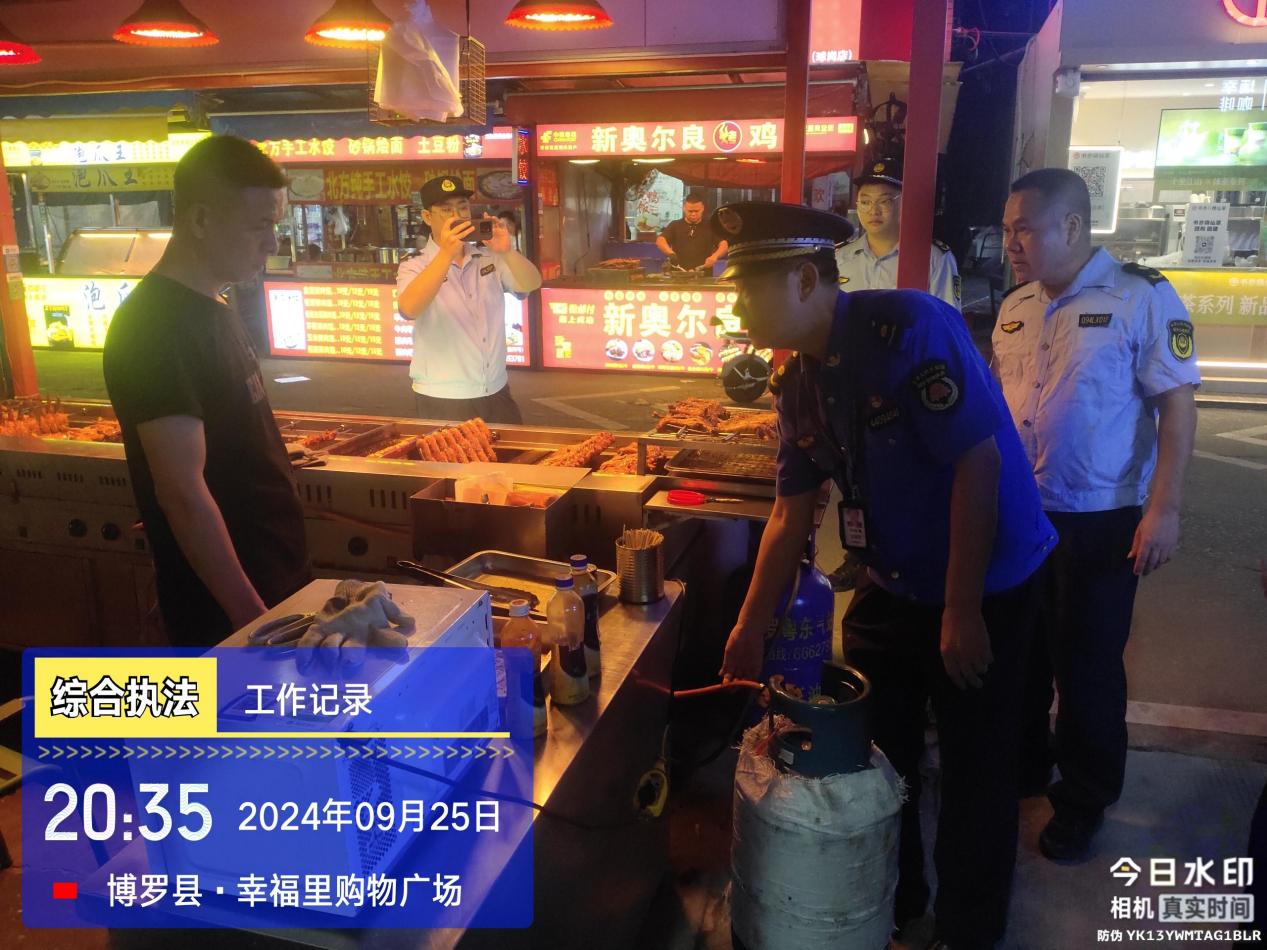 根據(jù)《關(guān)于開展中秋國慶節(jié)前安全生產(chǎn)和消防安全督導(dǎo)檢查的通知》《惠州市安全生產(chǎn)委員會(huì)辦公室關(guān)于做好國慶假期安全防范工作的通知》文件要求,聚焦我縣城管執(zhí)法領(lǐng)域安全生產(chǎn)和消防安全治本攻堅(jiān)三年行動(dòng)工作重點(diǎn),切實(shí)抓好我縣城管執(zhí)法領(lǐng)域安全防范工作,成立督導(dǎo)小組嚴(yán)格排查城鄉(xiāng)管理執(zhí)法領(lǐng)域重大安全風(fēng)險(xiǎn)隱患。2024年9月25日晚上,第一督導(dǎo)小組城鄉(xiāng)建設(shè)執(zhí)法保障中心執(zhí)法人員會(huì)同龍溪街道、園洲鎮(zhèn)綜合行政執(zhí)法隊(duì)工作人員分別到龍溪街道球崗路路段、園洲鎮(zhèn)銀河北路路段對(duì)夜市食品攤販進(jìn)行燃?xì)獍踩[患排查,開展流動(dòng)商戶燃?xì)獍踩珜m?xiàng)檢查,對(duì)食品攤販燃?xì)庥脩舸嬖谲浌芏嘟雍褪褂孟鹉z軟管等問題,我局執(zhí)法人員要求攤販燃?xì)庥脩袅⑿辛⒏模踩[患,排查中督促食品攤販燃?xì)庥脩魢?yán)禁使用超期限未檢驗(yàn)、檢驗(yàn)不合格、無技術(shù)檔案或者報(bào)廢的氣瓶充裝的燃?xì)猓谂挪榘踩[患的過程中,為提高商販們對(duì)燃?xì)馐褂玫陌踩庾R(shí),檢查工作人員耐心向沿途各門店、流動(dòng)攤販介紹燃?xì)獍踩嚓P(guān)知識(shí),應(yīng)急處置方式,宣傳燃?xì)馄骶叩倪x擇以及對(duì)鋼瓶二維碼全流程信息的識(shí)別,幫助商戶實(shí)現(xiàn)自查自改,從源頭杜絕問題燃?xì)馄骶呒皢栴}燃?xì)怃撈浚_保轄區(qū)內(nèi)燃?xì)馐褂靡?guī)范、安全。