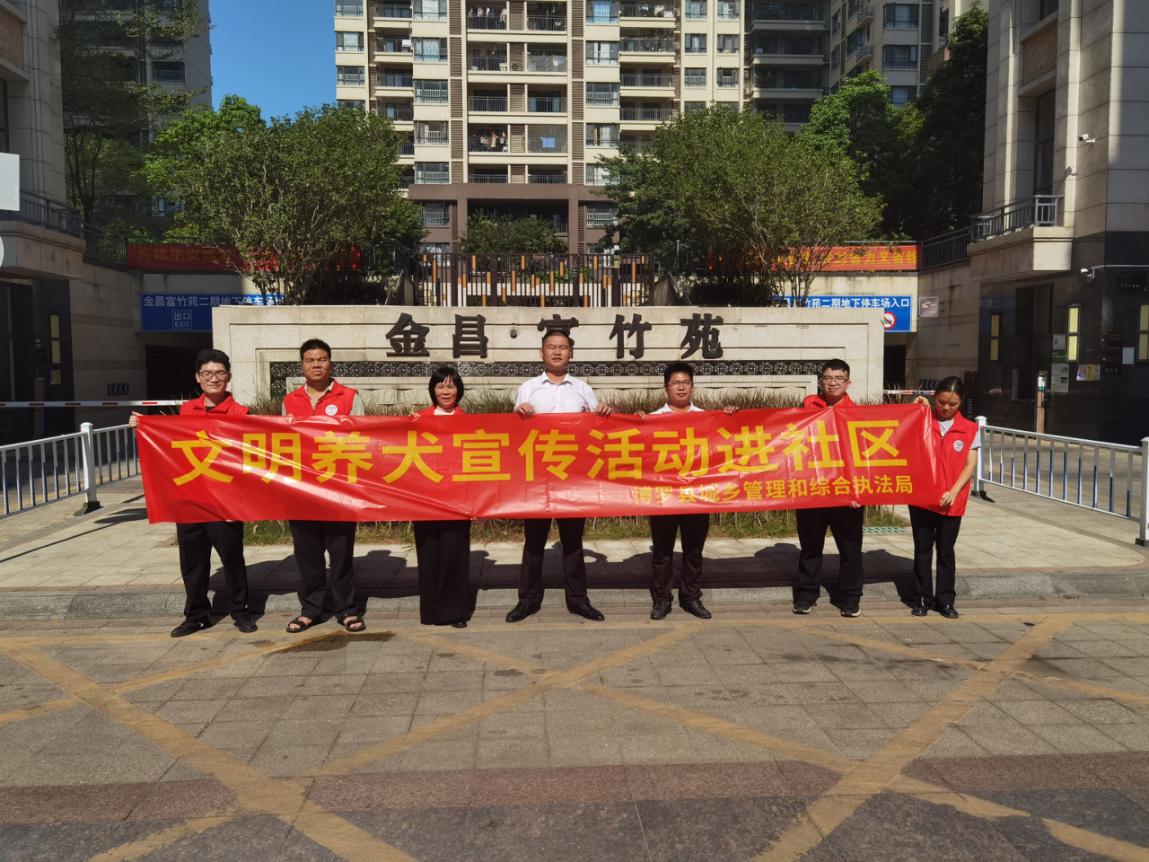 近年來,隨著人們生活水平的提高,養犬的家庭越來越多,隨之不文明養犬行為也不斷增加,如遛狗不拴繩、犬吠擾民、寵物糞便污染環境等問題,給社區居民的生活帶來了諸多困擾,影響了社區的和諧與整潔。為宣傳貫徹《惠州市養犬管理條例》,積極引導社區居民規范養犬、文明養犬,打造和諧、安全、穩定的社區環境,11月21日,我局黨員志愿者聯合龍溪社區在金昌·富竹苑開展“領辦實事”·文明養犬進社區宣傳活動。