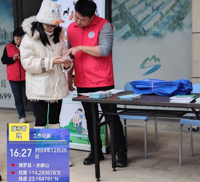 為進一步規范縣城區居民養犬行為,減少不文明養犬引發的事故和鄰里糾紛,切實維護安全、文明、和諧、干凈、有序的城市環境,2024年12月25日下午,博羅縣城管執法局在羅陽街道禧臨門和水映山兩個小區內同時開展文明養犬進社區宣傳活動,通過宣傳《惠州市養犬管理條例》、現場指導犬只登記等一系列措施,提升居民文明養犬意識,讓文明養犬理念深入人心。