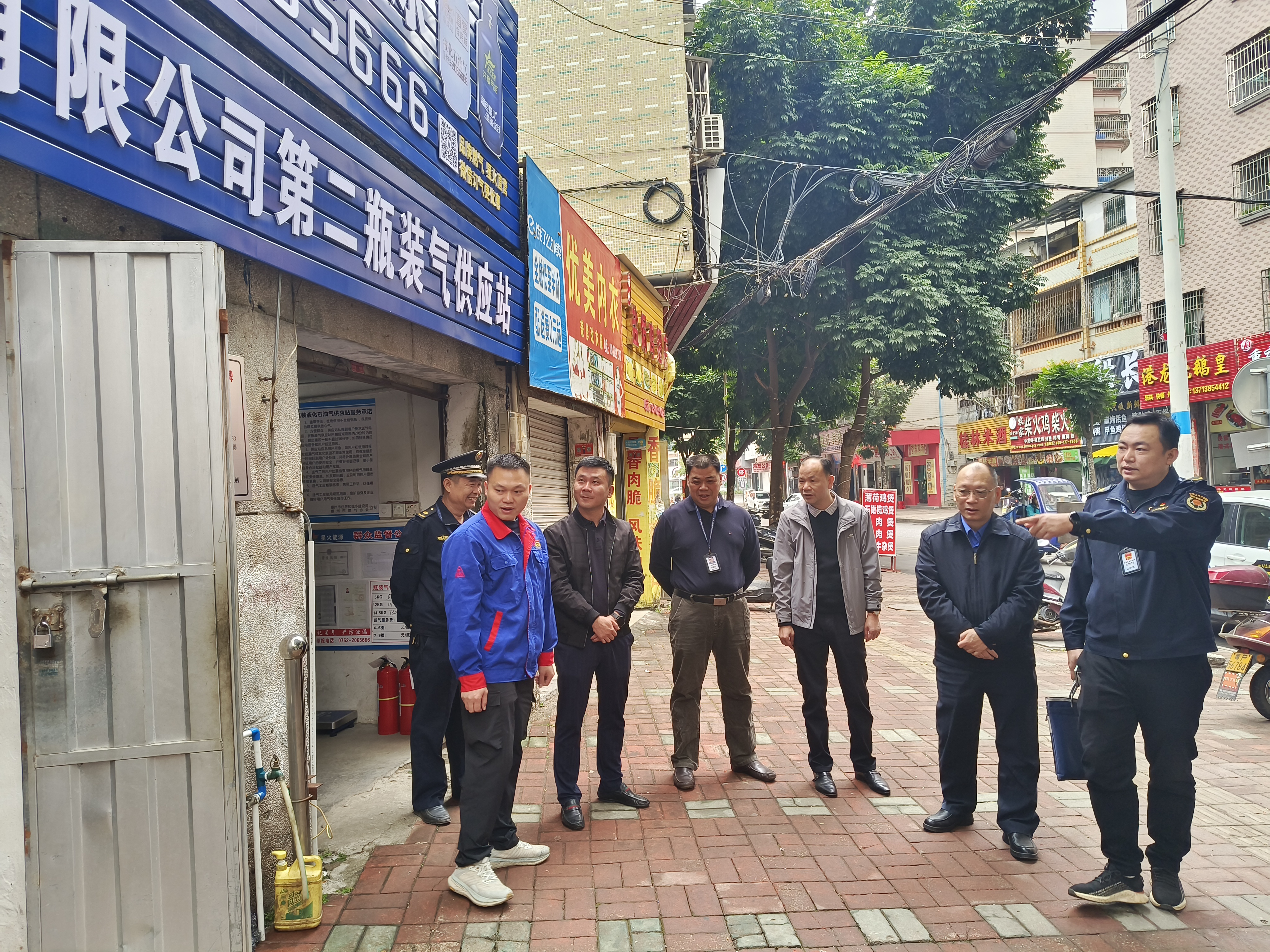 博羅縣城管執法局黃新祥副局長、行政檢查股執法人員以及博羅縣城鄉建設執法保障中心執法人員陪同督導組分別前往星火第二瓶裝供應站(燃氣領域)、瑞和園臨時疏導點(市容市貌)、北門路廣告招牌回頭看(戶外廣告)。
