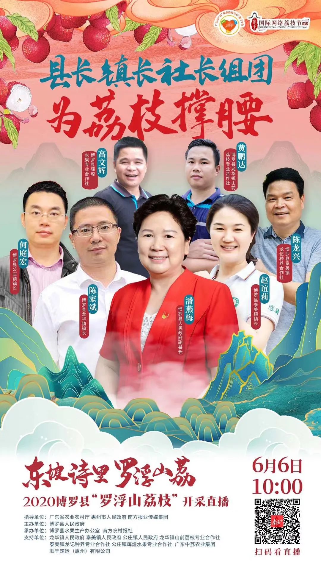 2020博羅縣“羅浮山荔枝"開采直播活動在廣東省農(nóng)業(yè)農(nóng)村廳 、惠州市人民政府、南方報業(yè)傳媒集團指導下,由博羅縣人民政府、惠州市農(nóng)業(yè)農(nóng)村局主辦,博羅縣水果生產(chǎn)辦公室、南方農(nóng)村報社承辦。