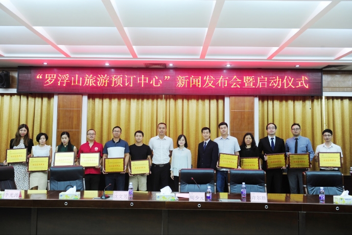 發布會上,對“羅浮山旅游預訂中心”平臺的現狀、規劃建設、發展前景等方面做了詳細的介紹,并為11家合作的駐山企業頒發“誠信合作商”牌匾。