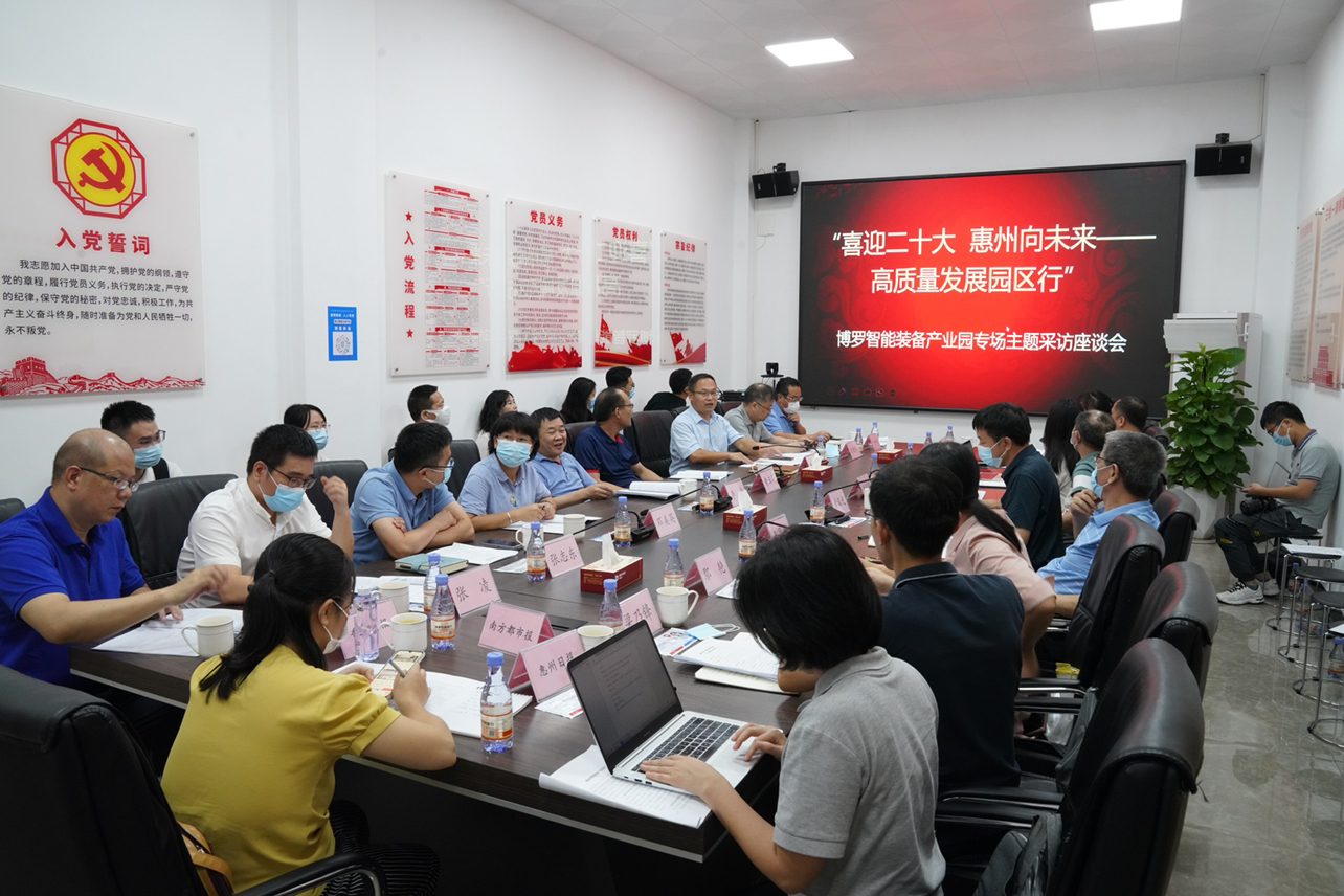 在博羅智能裝備產業園管委會一樓會議室,媒體采訪團聽取了博羅產業轉移工業園管委會常務副主任盧慧明就園區整體建設及發展情況匯報,并與園區代表們就如何以“千億園區 萬億產業”為目標推進高質量發展,打造優勢產業集聚高地等問題進行座談。