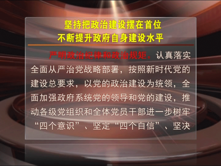 今年,縣政府工作報告指出,要嚴明政治紀律和政治規矩,推進民主法治建設,深化作風建設,強化廉潔從政。今天來看解讀政府工作報告系列報道之七:堅持把政治建設擺在首位,不斷提升政府自身建設水平。