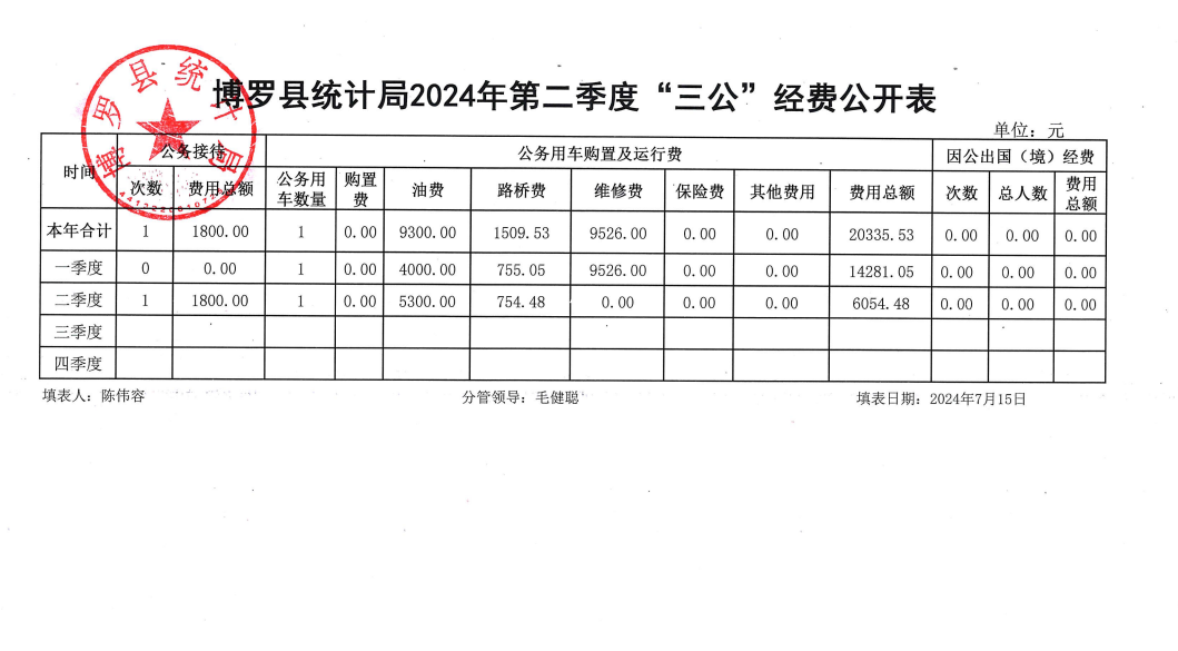 博羅縣統(tǒng)計(jì)局2024年第二季度“三公”經(jīng)費(fèi)公開(kāi)表