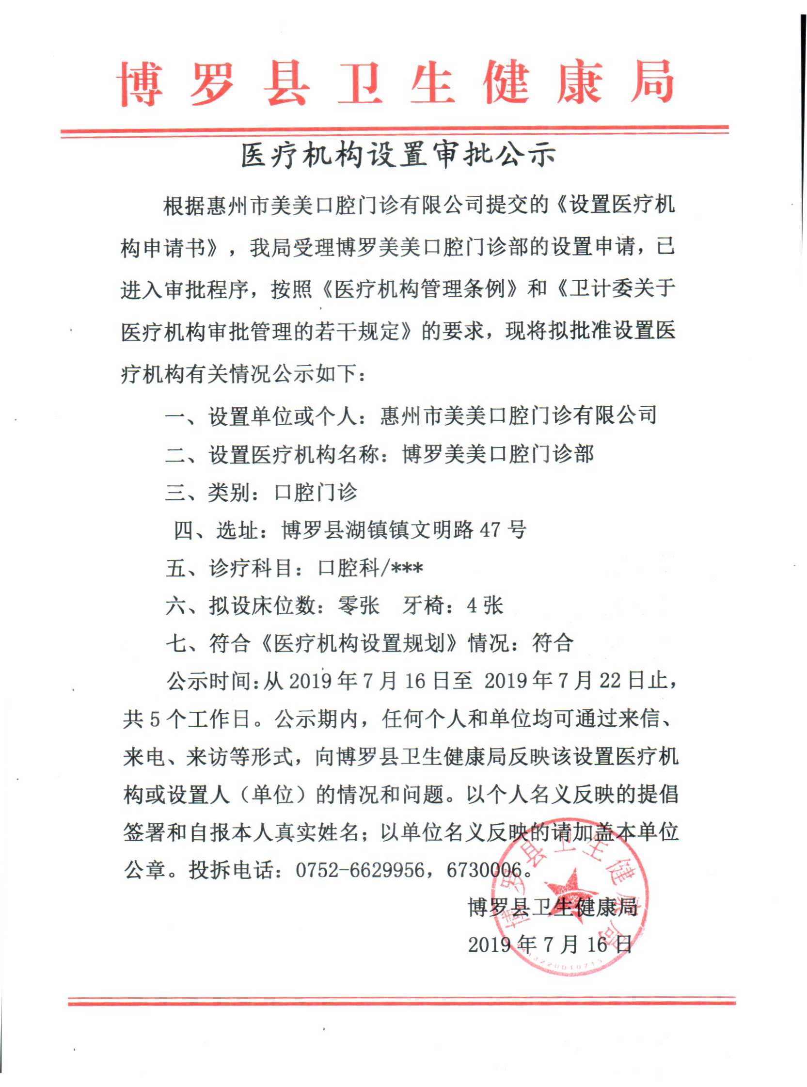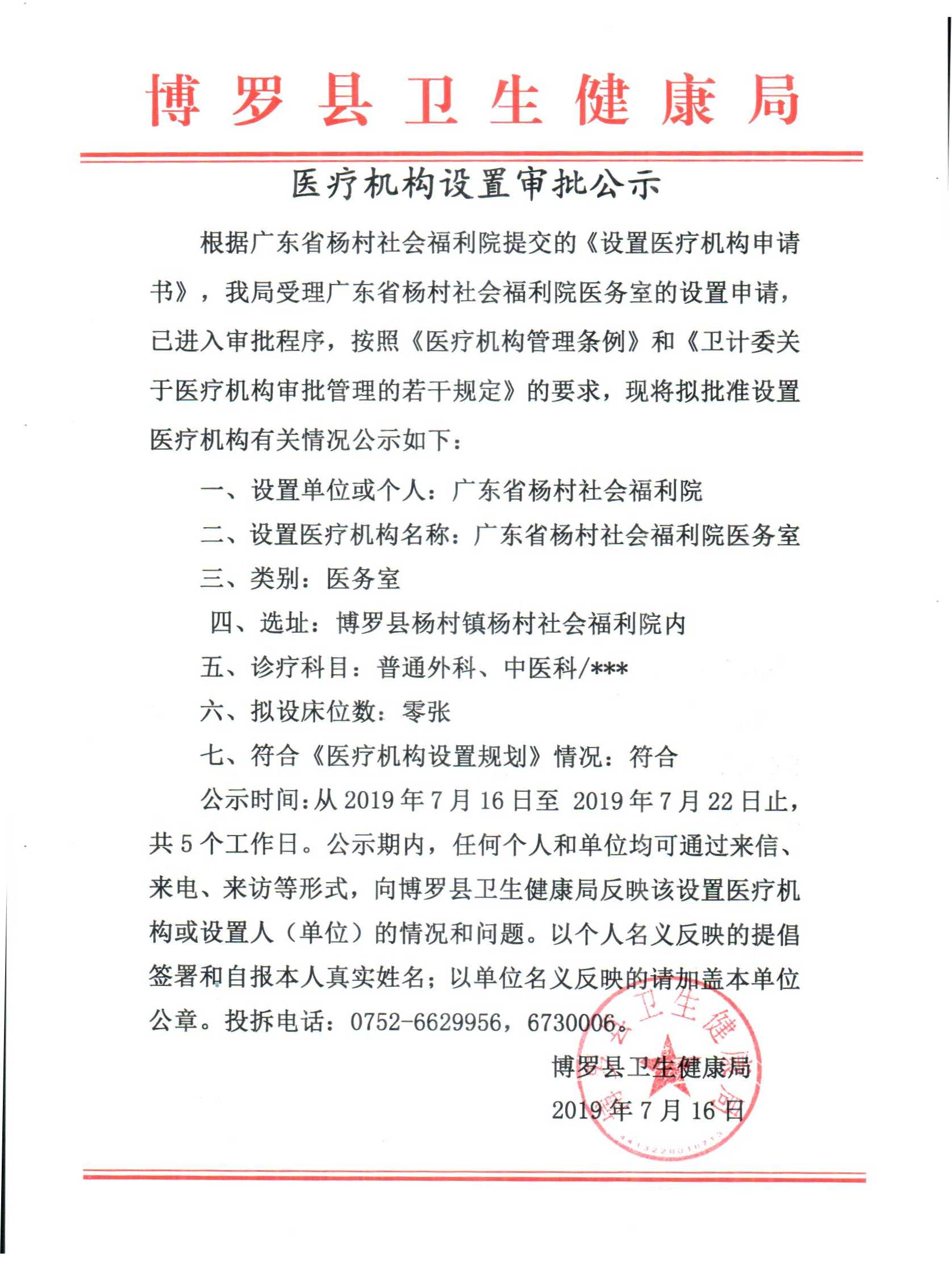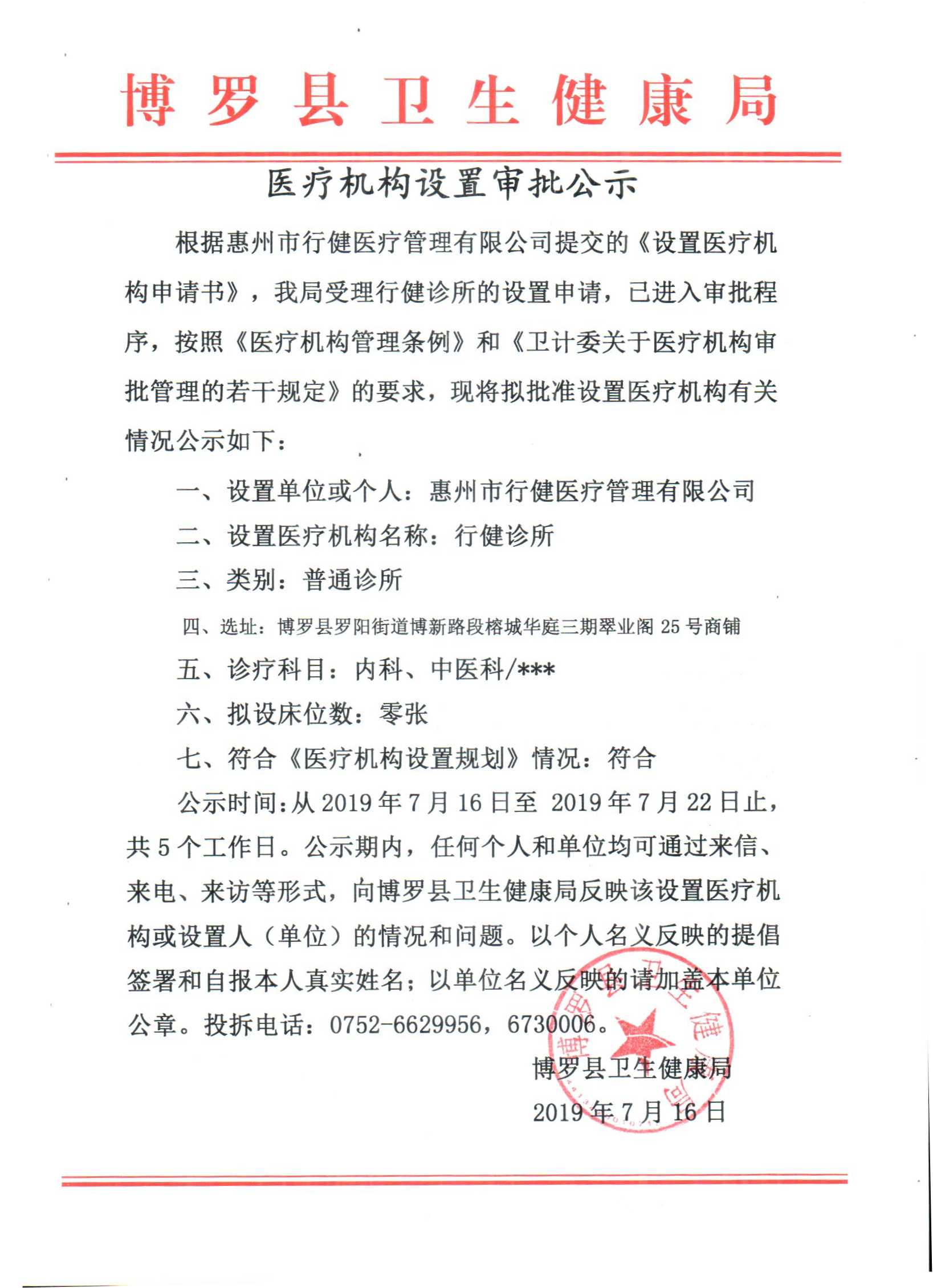博羅縣醫療機構設置審批公示(2019年7月16日)
