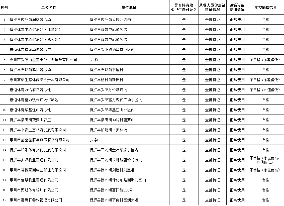 2018年博羅縣經(jīng)營(yíng)性游泳場(chǎng)所“雙隨機(jī)”監(jiān)督抽查結(jié)果(第一批)