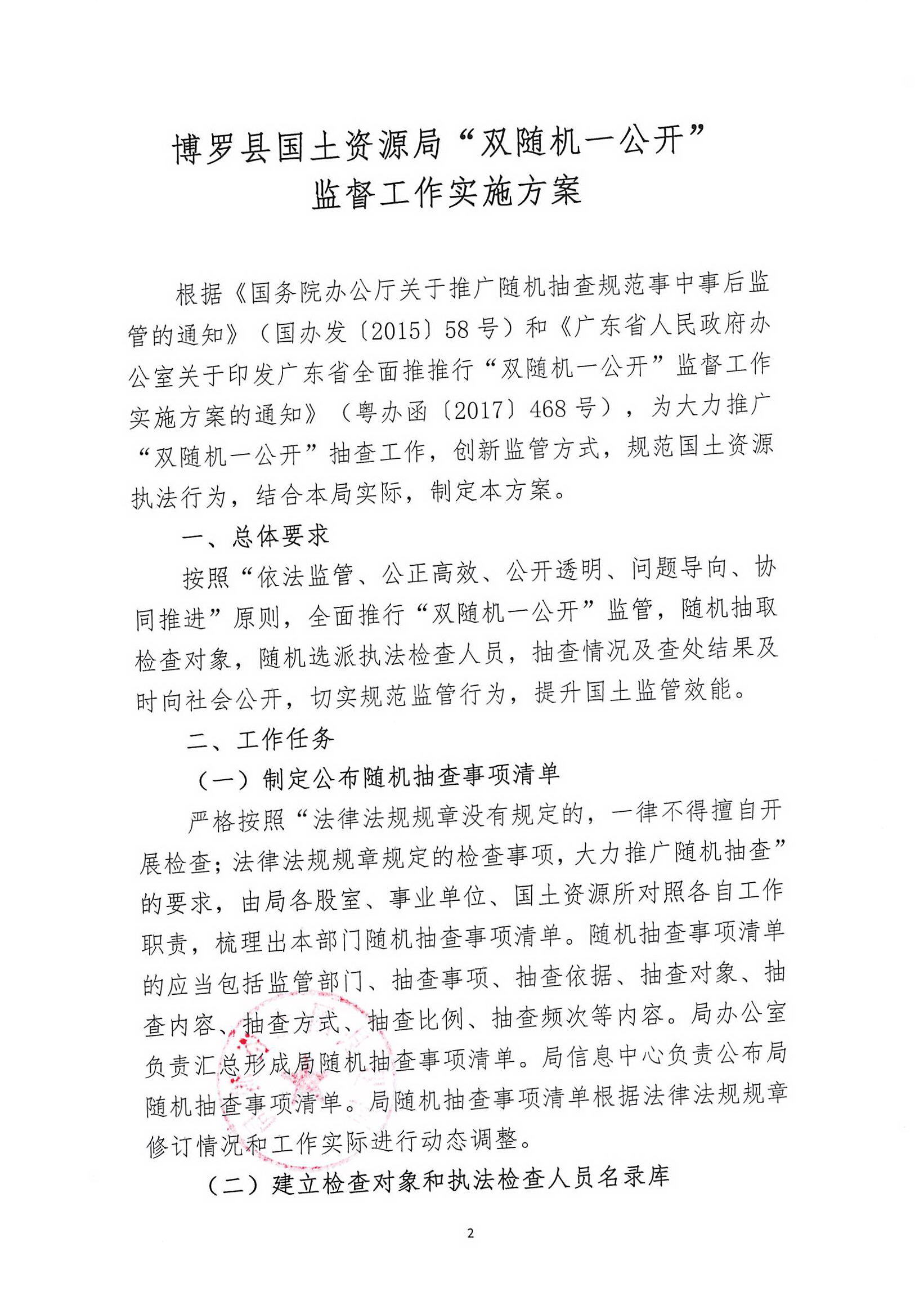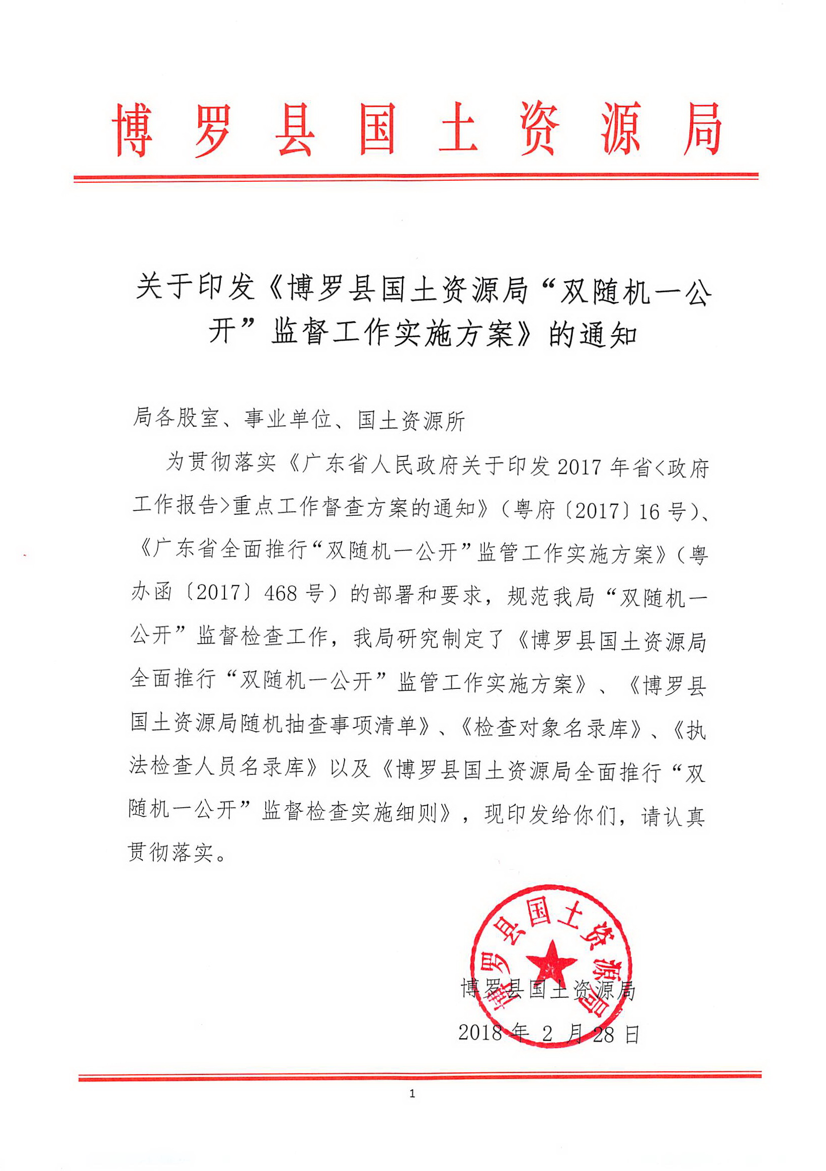 關(guān)于印發(fā)《博羅縣國土資源局2018年度“雙隨機(jī)一公開”監(jiān)督工作實施方案》的通知