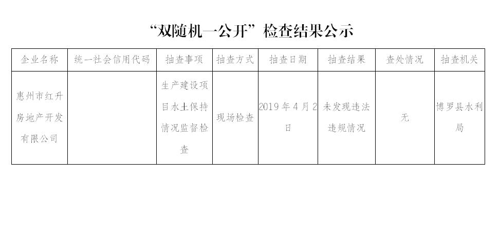 博羅縣水利局“雙隨機一公開”檢查結果公示
