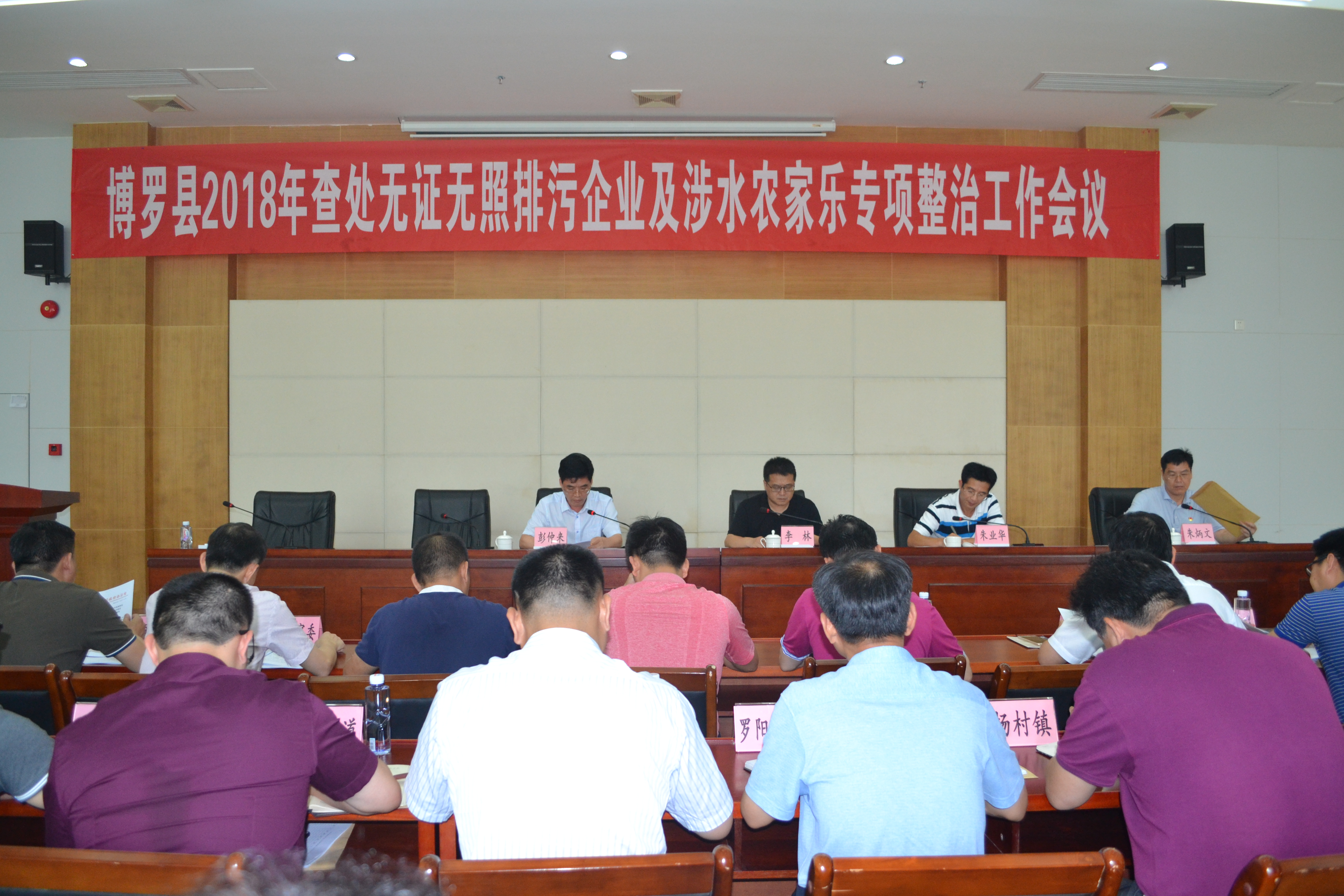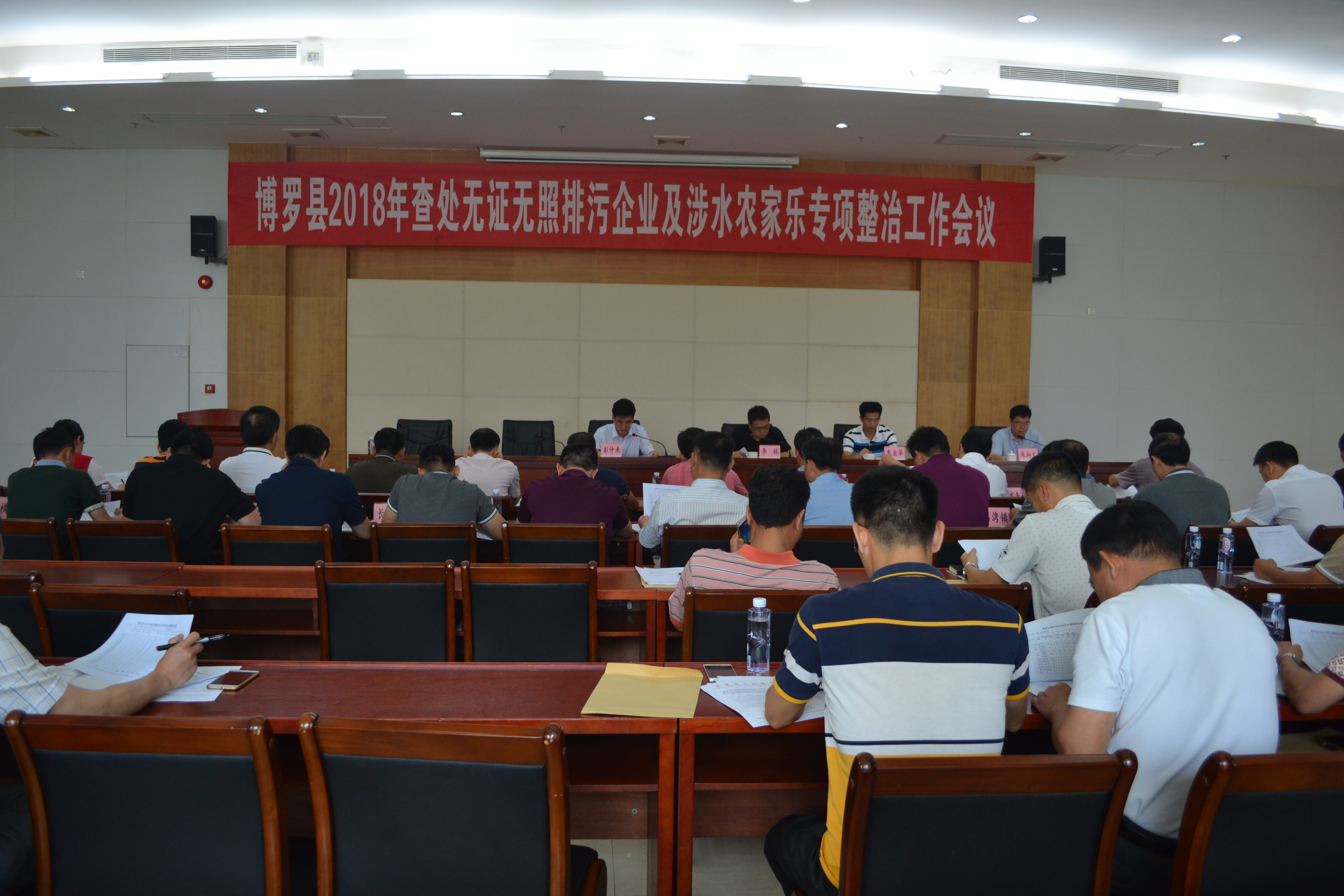 為更好地貫徹落實我縣水污染防治攻堅戰各項整治工作,2018年5月16日,博羅縣人民政府組織在縣文化中心召開博羅縣2018年查處無證無照排污企業及涉水農家樂專項整治工作會議。李林副縣長,縣市場監督管理局、縣文體旅游局主要領導出席會議,博羅縣查處無證無照排污企業專項整治工作領導小組成員、博羅縣農家樂(民宿)等經營單位專項整治工作領導小組成員、縣市場監督管理局各監管所所長參加了會議,會議還邀請了縣監察委相關領導參加。