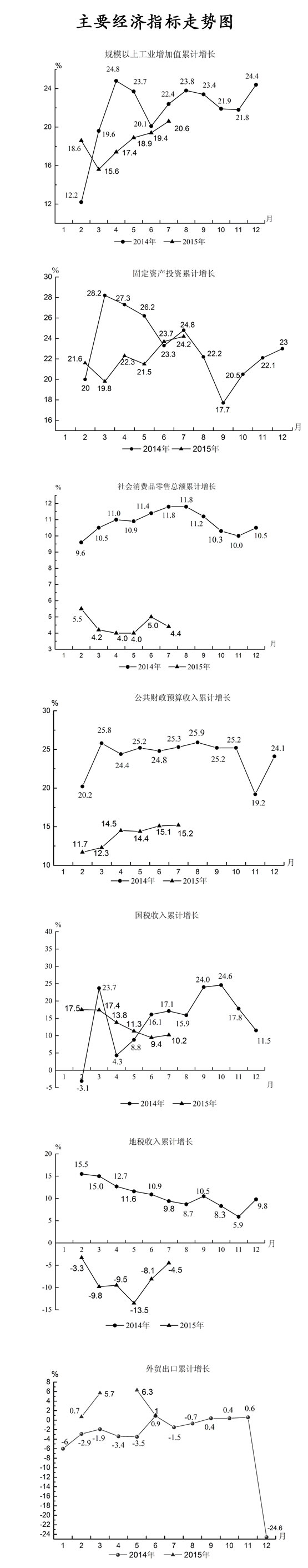 1-7月,全縣經濟延續上半年平穩運行的態勢,其中規模以上工業增加值、固定資產投資、商品房銷售面積及銷售額、稅收、公共財政預算收入、人民幣貸款余額、用電量等7項指標增幅比1-6月提高,社會消費品零售總額、公共財政預算支出、人民幣存款余額等3項指標增幅比1-6月有所回落。
