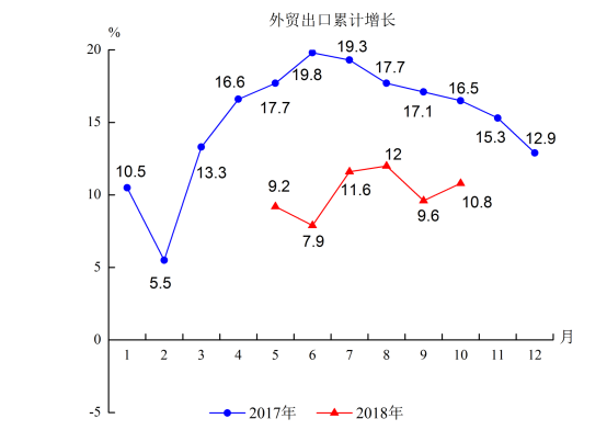 11.1-10月外貿(mào)出口158.71億元,增長10.8%,增幅比去年同期回落5.7個(gè)百分點(diǎn)。
