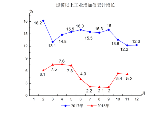 1.規(guī)模以上工業(yè)增加值增長5.2%,增幅比去年同期回落7個(gè)百分點(diǎn)。