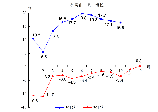 11.1-10月外貿出口總額141.85億元,增長16.5%,增幅比去年同期提高19.9個百分點。