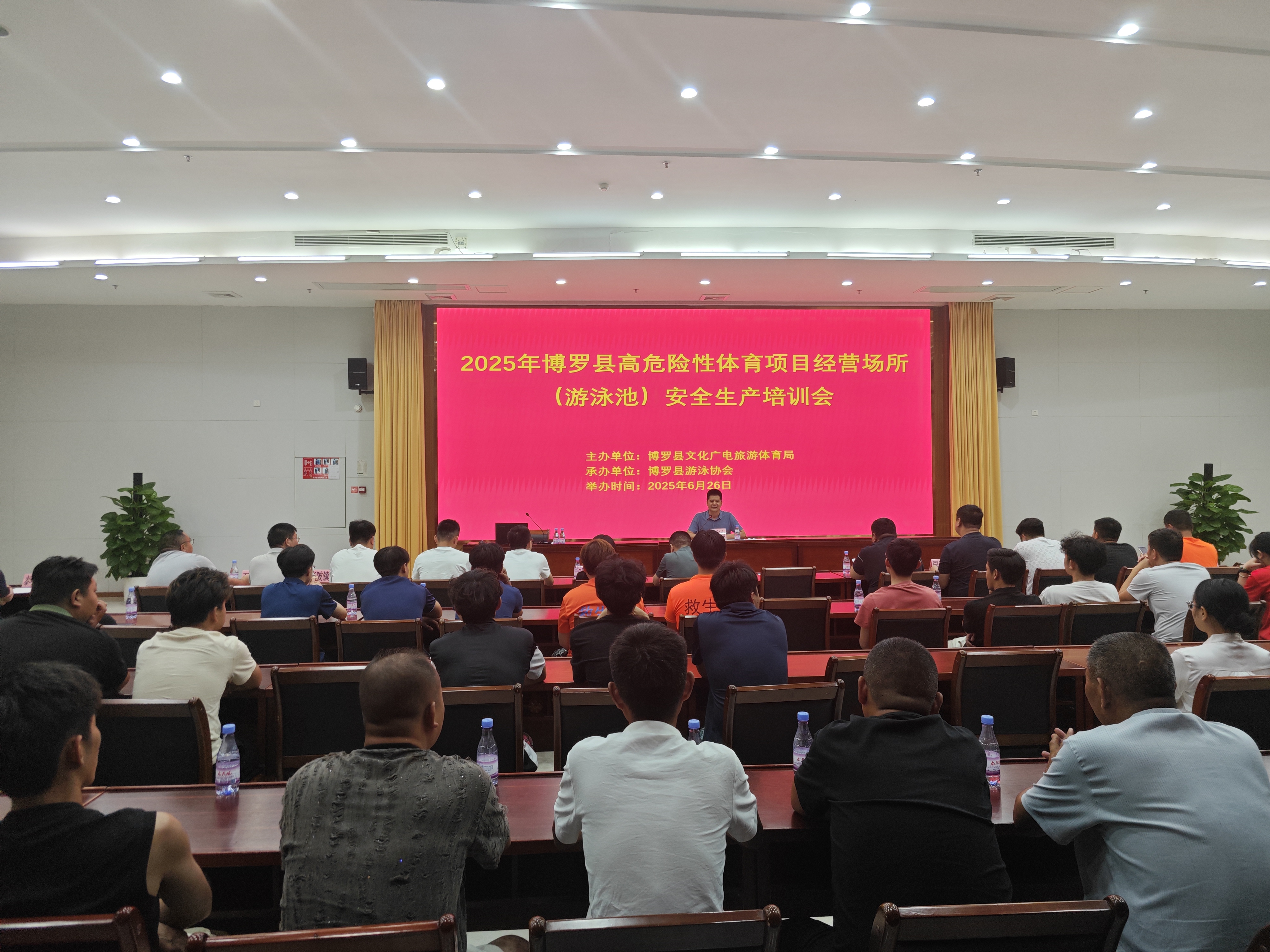 為進一步規(guī)范全縣游泳場所的經(jīng)營管理,堅決筑牢安全防線,切實提高游泳池管理者的安全防范意識和安全管理能力,有效預防游泳場所安全事故發(fā)生,6月26日下午,縣文化廣電旅游體育局在博羅縣文化中心23號會議室舉辦2025年博羅縣高危險性體育項目經(jīng)營場所(游泳池)安全生產(chǎn)工作培訓。各鎮(zhèn)(街道)游泳池安全管理業(yè)務(wù)骨干、全縣高危體育經(jīng)營場所(游泳池)負責人以及局相關(guān)業(yè)務(wù)骨干共100余人參加了會議。