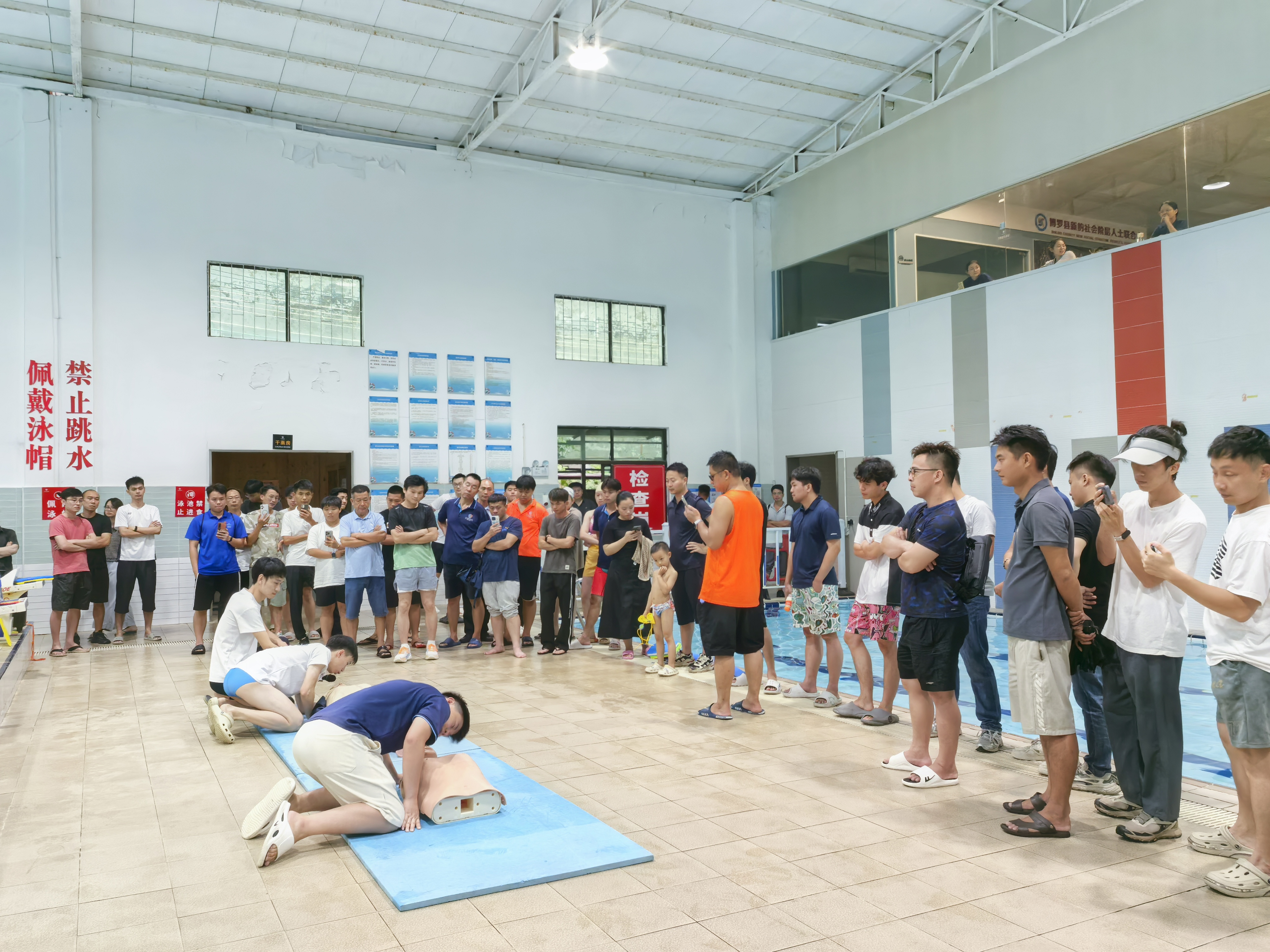 邀請了縣游泳協(xié)會范浪政、熊卓、張志豪、周梓鵬等教練圍繞“25米速度游”“赴救技術(shù)”“陸上解脫技術(shù)”“心肺復蘇”等內(nèi)容,并現(xiàn)場對全體參訓救生員進行全面考核。