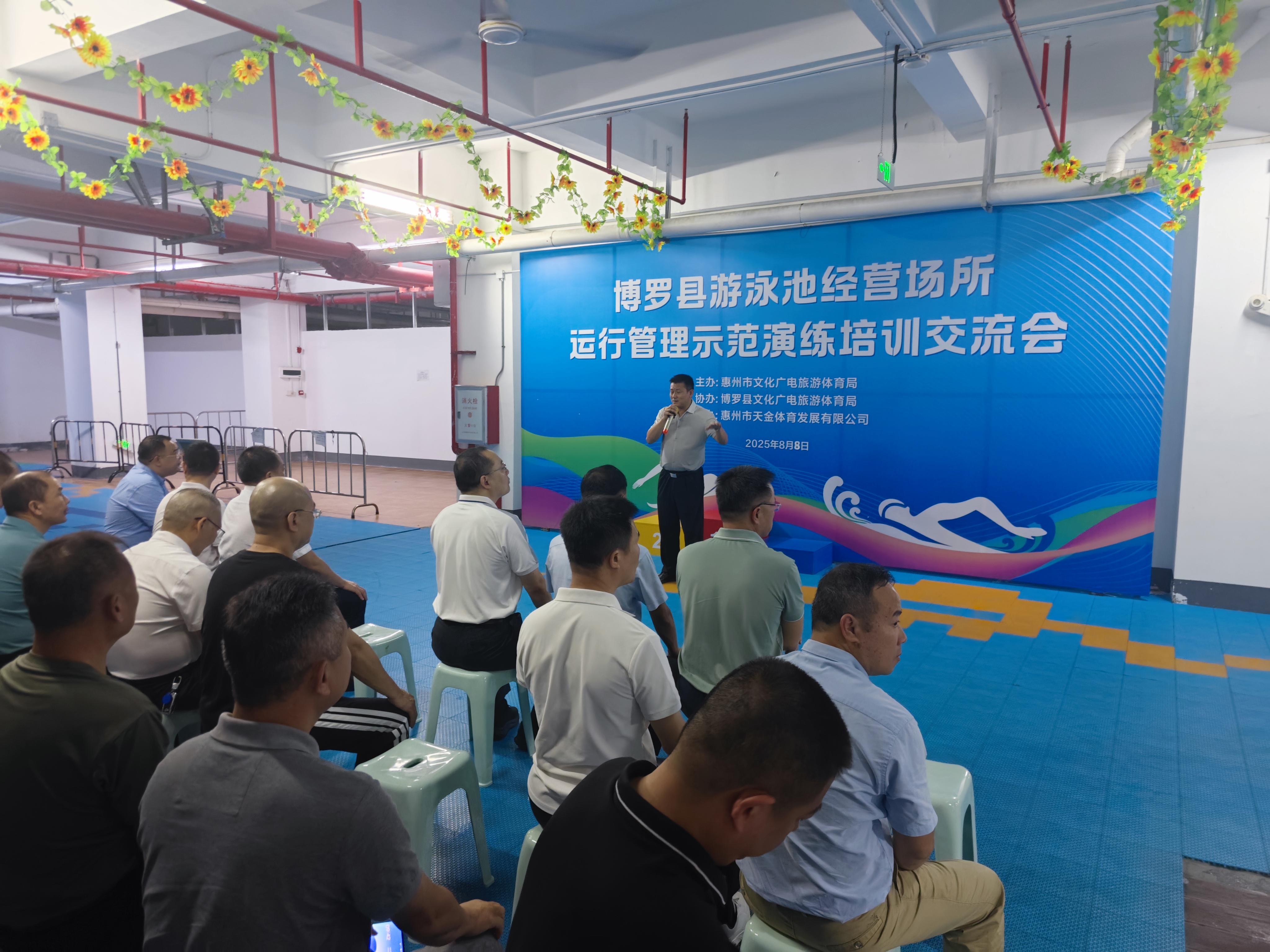 8月8日上午,博羅縣文化廣電旅游體育局舉辦游泳池經營場所運行管理示范演練培訓交流會,各縣區文化廣電旅游體育局分管領導及相關負責同志,全縣游泳池經營業主、場所管理人共100余人參加,市文化廣電旅游體育局副局長羅水波出席培訓交流會。