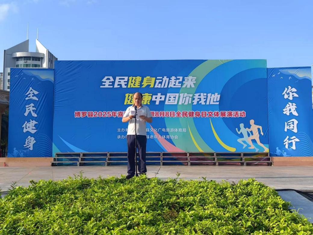 8月8日,為深入貫徹落實黨的二十大精神和習近平總書記關于體育工作的重要論述精神,歡度全國第17個全民健身日,由縣文化廣電旅游體育局主辦、縣老年人體育協會承辦的2025年喜迎十五運暨8月8日全民健身日文體展演活動在縣城文化廣場舉行,我局黨組成員、四級調研員鄭浩同志出席活動并致辭。