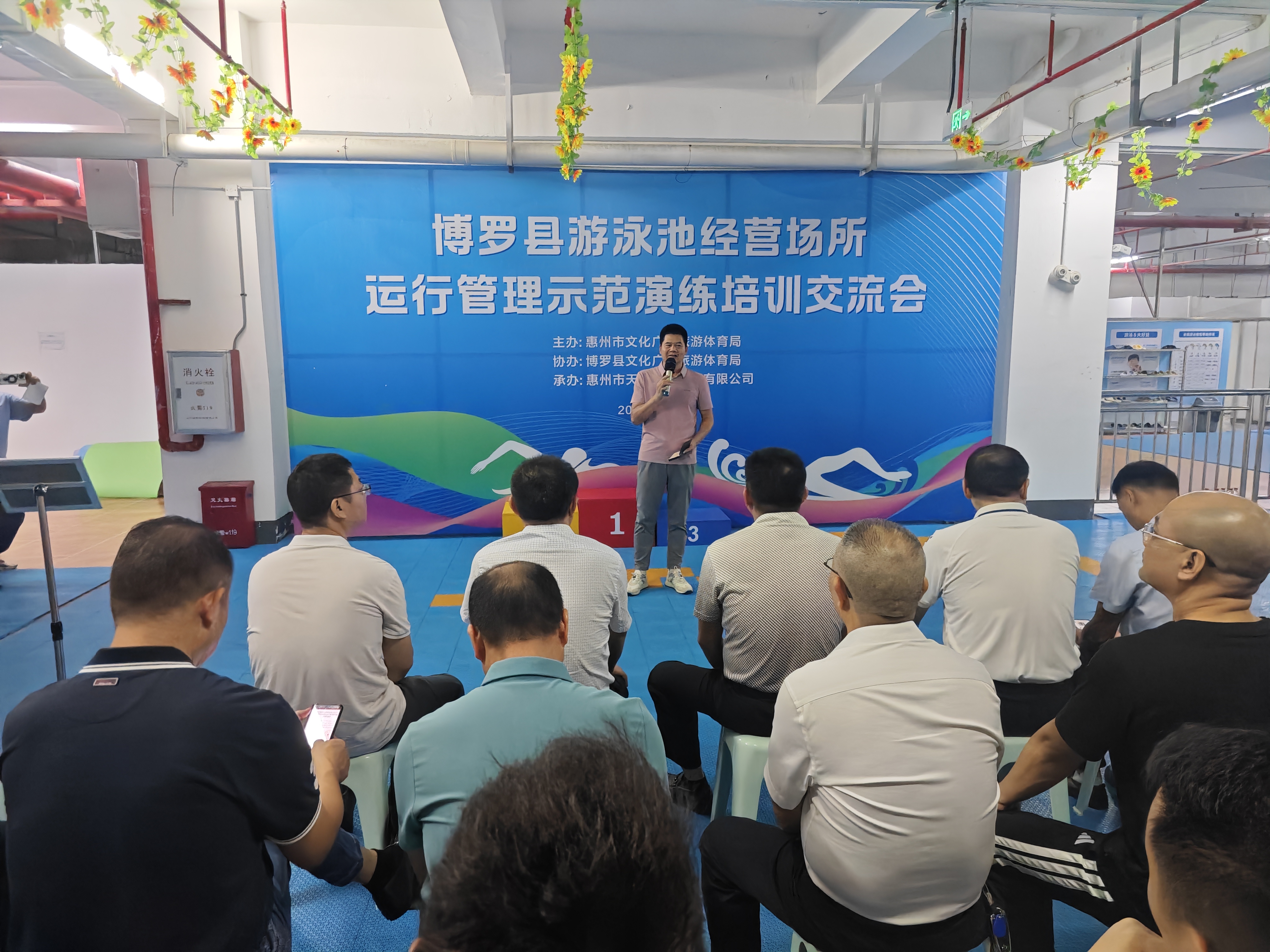 8月8日上午,博羅縣文化廣電旅游體育局舉辦游泳池經營場所運行管理示范演練培訓交流會,各縣區文化廣電旅游體育局分管領導及相關負責同志,全縣游泳池經營業主、場所管理人共100余人參加,市文化廣電旅游體育局副局長羅水波出席培訓交流會。