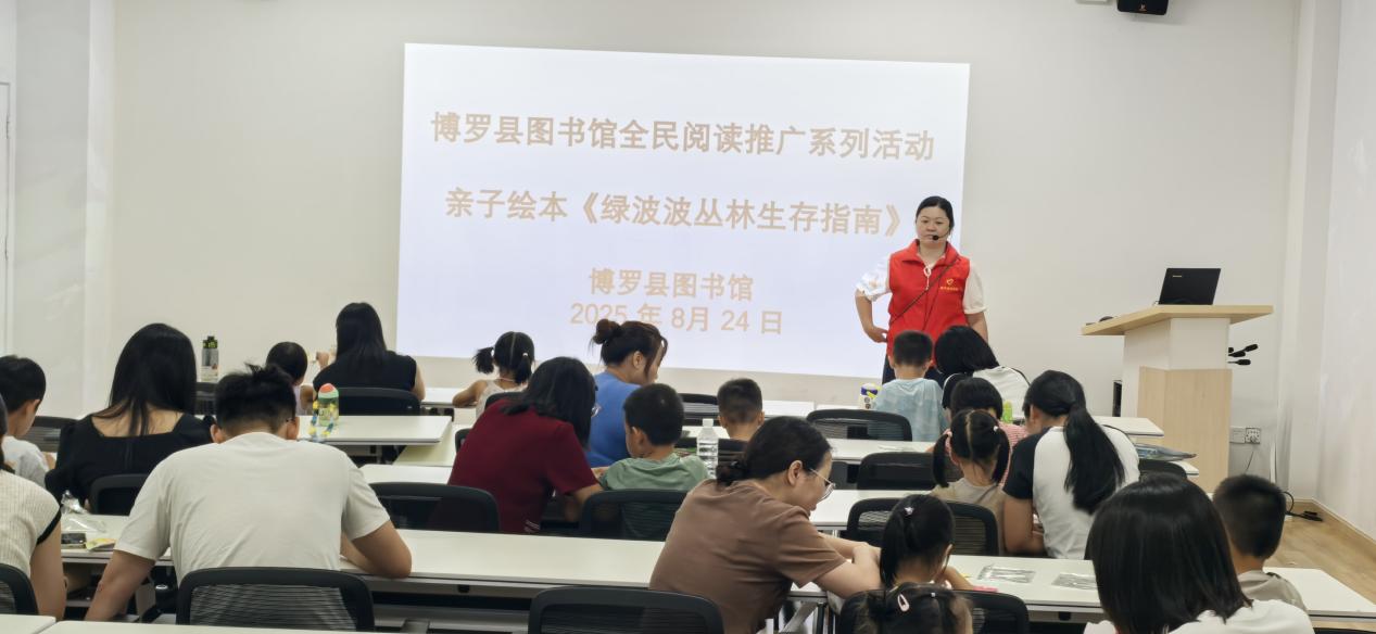 8月24日,博羅縣圖書館開展全民閱讀活動之親子繪本《綠波波叢林生存指南》,共有20組親子家庭參加。