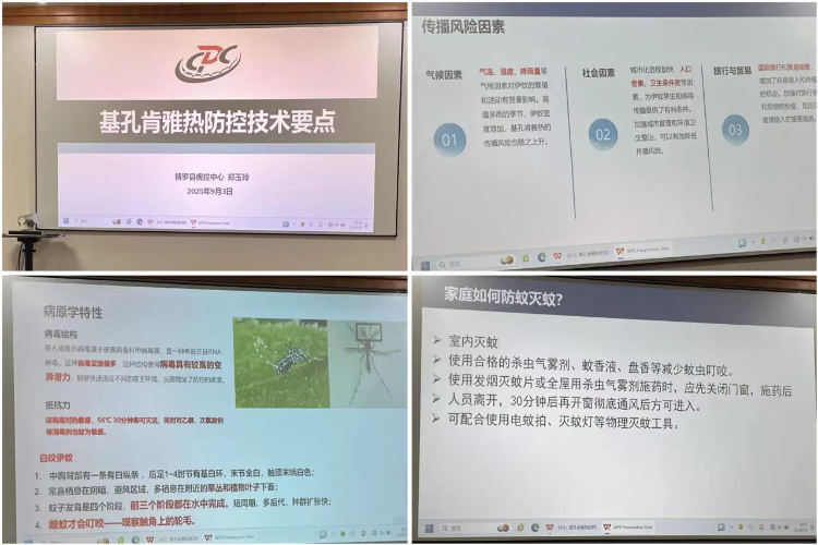 鄭玉玲作了題為“基孔肯雅熱防控技術要點”的培訓,講解如何準確掌握基孔肯雅熱的病原學、流行病學特點、臨床表現、診斷方法以及最關鍵、最實用的預防控制措施,深入講解了如何開展機構內的蚊媒孳生地清理、如何落實防蚊滅蚊措施、如何做好嬰幼兒的健康監測、如何在發現疑似病例時及時報告并科學處置等。
