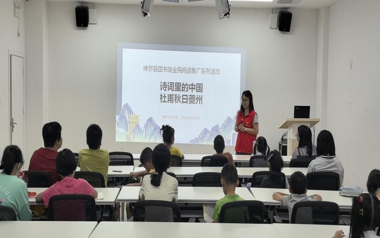 9月21日上午,博羅縣圖書館開展“詩詞里的中國”—杜甫的秋意夔州活動。約30組親子家庭參加。