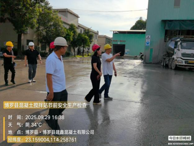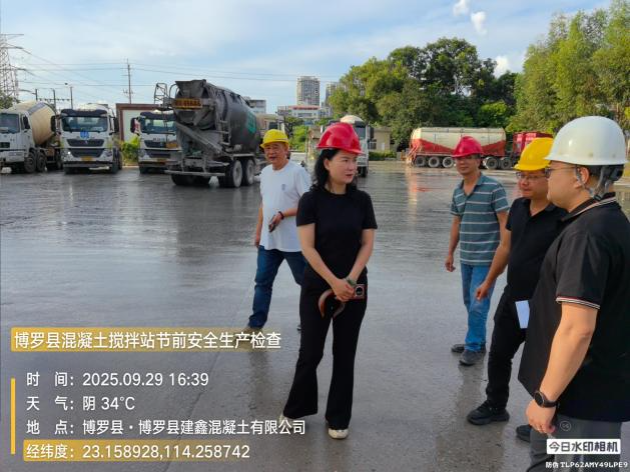 為深入貫徹習(xí)近平總書記關(guān)于安全生產(chǎn)、防災(zāi)減災(zāi)救災(zāi)的重要論述和重要指示批示精神,認(rèn)真落實市縣有關(guān)工作部署,持續(xù)推進(jìn)安全生產(chǎn)治本攻堅三年行動、隱患排查治理年行動和博羅縣預(yù)拌混凝土行業(yè)道路交通安全運輸車輛專項整治工作,切實做好我縣預(yù)拌混凝土行業(yè)國慶、中秋節(jié)前安全防范,2025年9月29日下午,博羅縣住建局黨組成員、副局長郭麗嫻帶隊開展預(yù)拌混凝土生產(chǎn)企業(yè)國慶、中秋節(jié)前安全生產(chǎn)檢查,局建筑節(jié)能中心相關(guān)人員參加檢查。