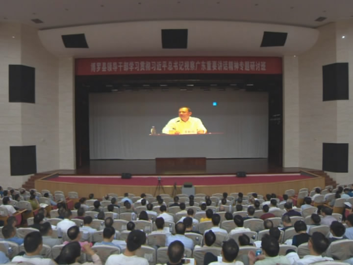 11月15日,我縣組織收看省委宣傳部副巡視員李長青所作的專題輔導報告會,推動我縣持續深入學習貫徹習近平總書記視察廣東重要講話精神往深里走、往實里抓。縣委副書記、縣長陳國煌,縣人大常委會主任余瑞芳,縣政協主席張利生,縣委副書記、政法委書記周四安等縣四套班子領導,副科級以上干部近1100人集中聆聽了報告會。