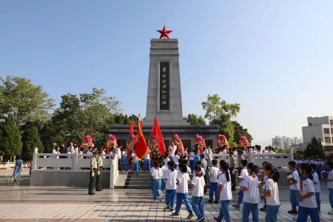 上午8時30分,公祭活動在國歌聲中正式開始,全體人員一起面向烈士紀念碑低頭默哀,少先隊員獻唱《我們是共產主義接班人》。