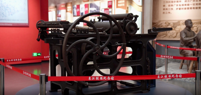在東江縱隊(duì)紀(jì)念館里,有一臺(tái)近千公斤的印刷機(jī),它原屬《博羅日?qǐng)?bào)》,由社長(zhǎng)陳潔1941年募資購(gòu)得。在1944年6月份日軍掃蕩時(shí),陳潔將其藏在農(nóng)民家里才得以保留。后來(lái),10多名戰(zhàn)士突破封鎖把印刷機(jī)運(yùn)回羅浮山交給前進(jìn)報(bào)社。有了這臺(tái)印刷機(jī),《前進(jìn)報(bào)》實(shí)現(xiàn)了從油墨印刷到機(jī)械鉛印的質(zhì)的飛躍,不僅擴(kuò)大了發(fā)行范圍,還對(duì)宣傳中國(guó)共產(chǎn)黨的抗日主張、方針和政策產(chǎn)生了極大影響。